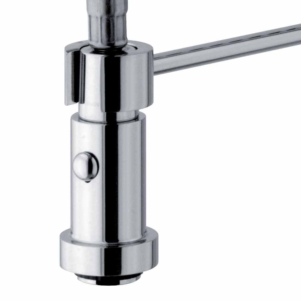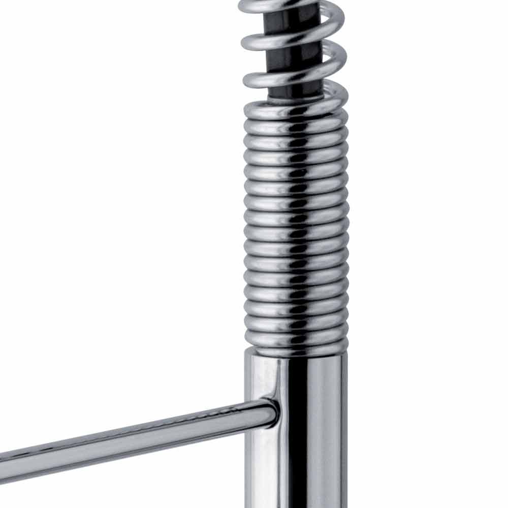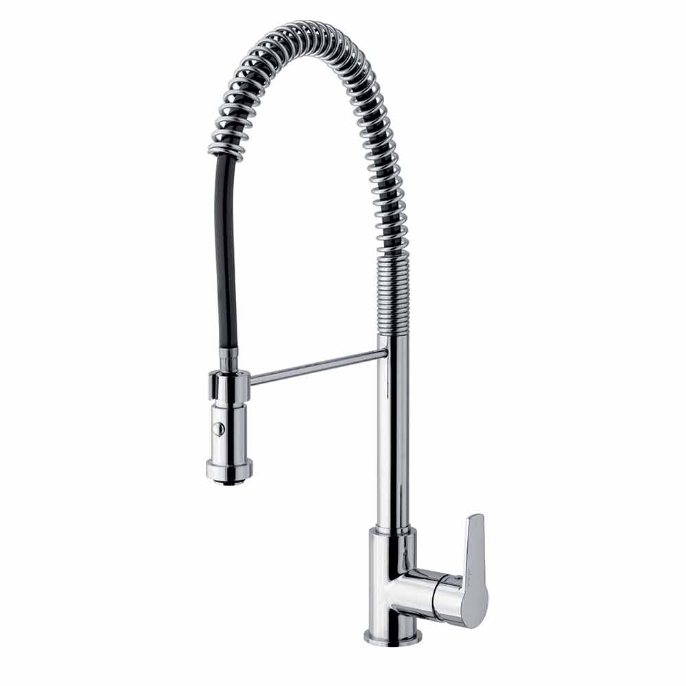 Made in Italy køkkenvask mixer lavet af forkromet messing. Takket være den justerbare tud med fjeder og 2-jet-brusebadet kombineres funktionalitet og design for at give det perfekte produkt til et køkken med et moderne og innovativt look uden at forsømme en ekstrem enkel og praktisk anvendelse. Hvad der øger værdien endnu mere er tilstedeværelsen af en patrondefineret ES, der er i stand til at tilføre koldt vand, når armen hæves til den centrale position, hvilket undgår behovet for varmt vand fra kedlen og dermed muliggør betydelige energibesparelser.