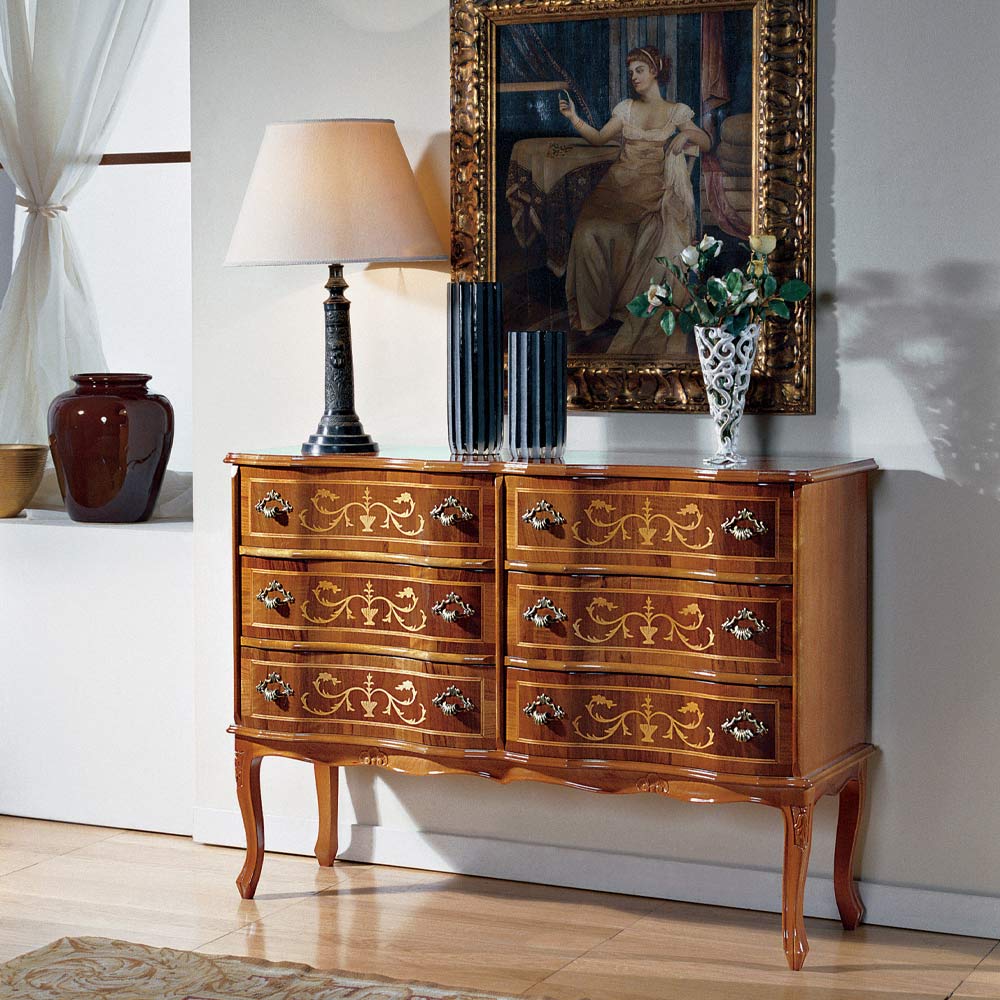 Klassisk stil kommode i træ med 6 skuffer Made in Italy.