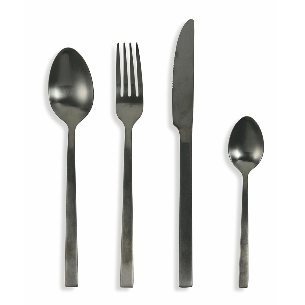 Design bestiksæt i blank eller mat eller sort kobberstål, 24 stk.