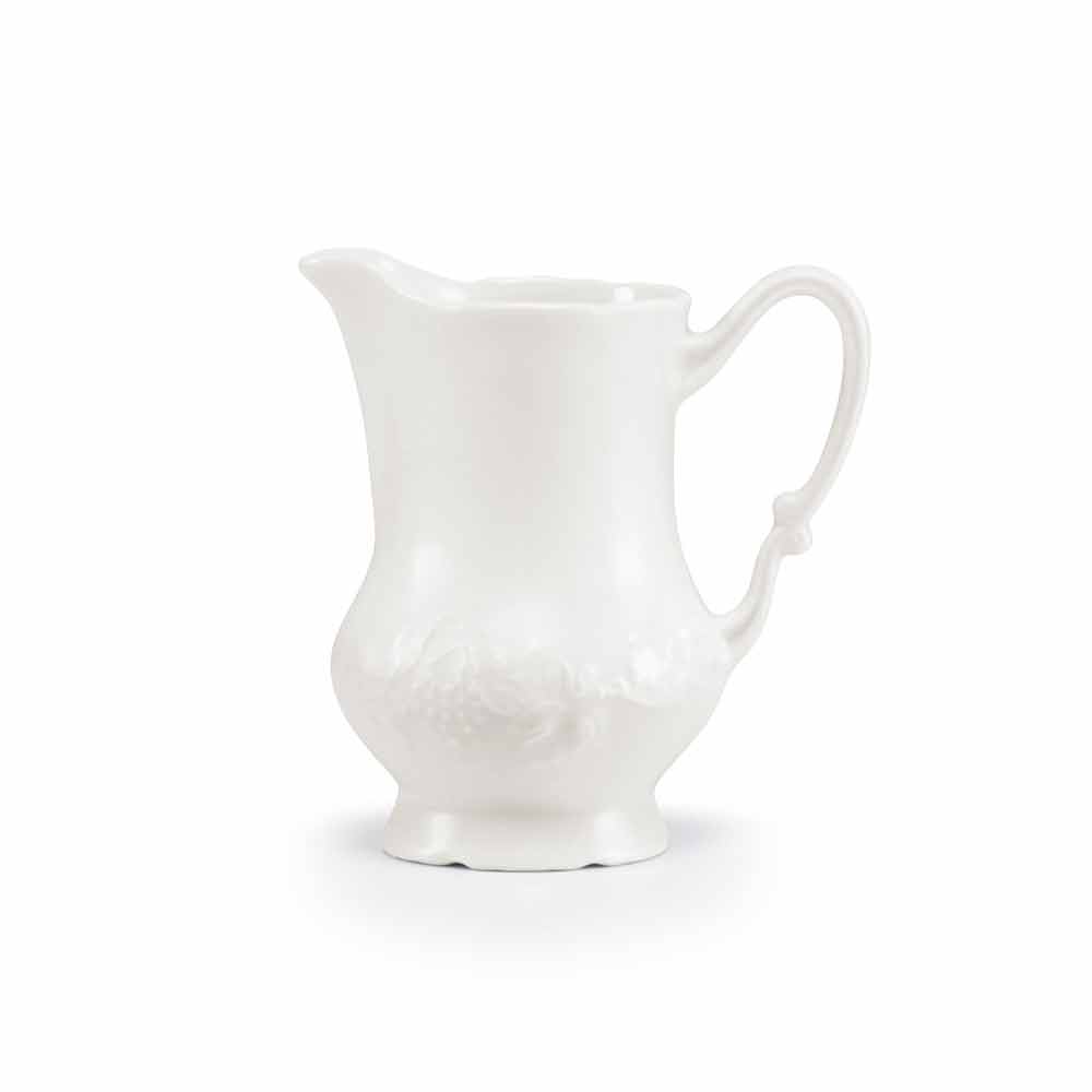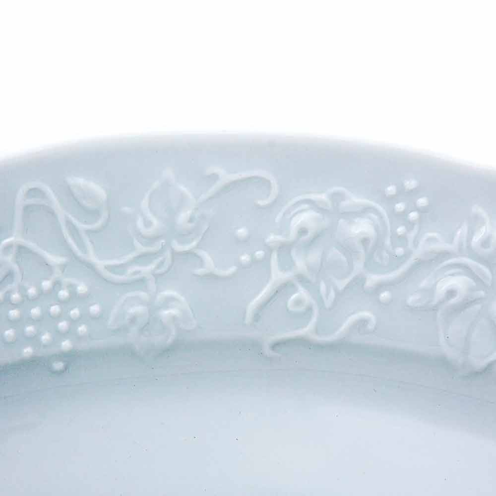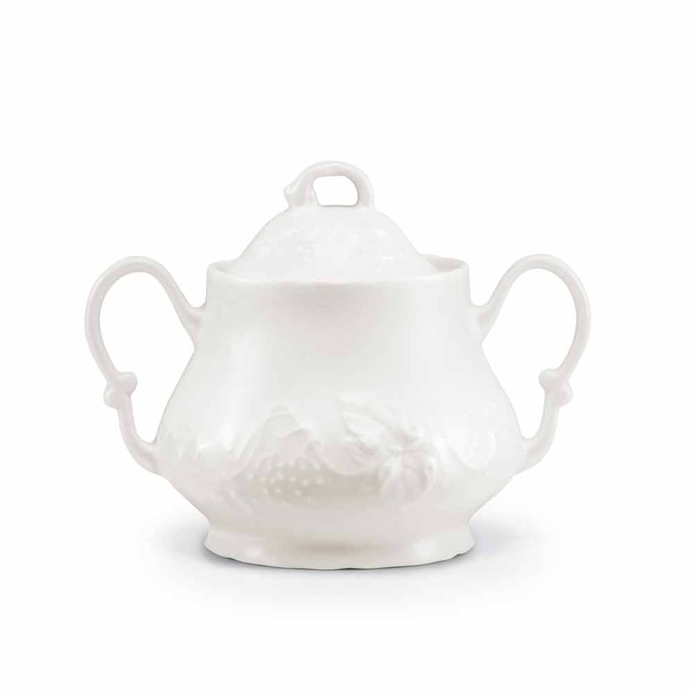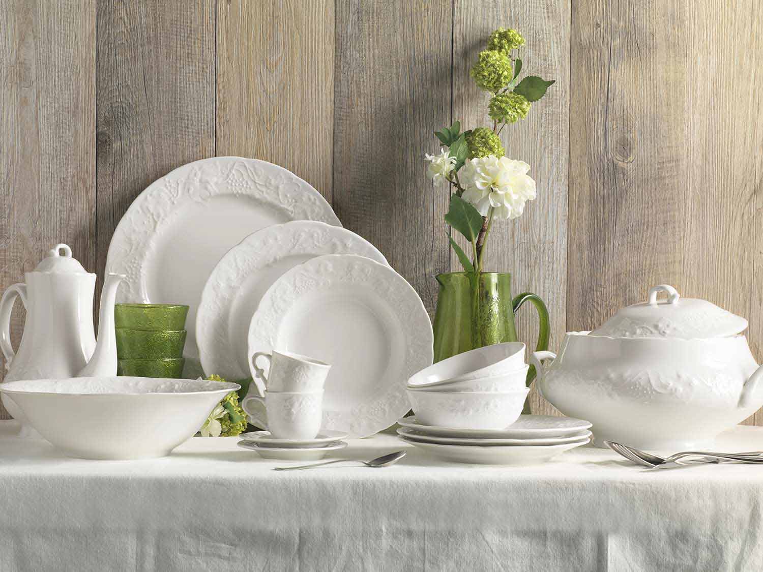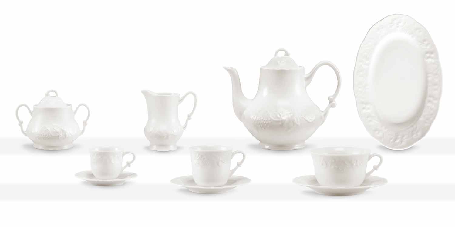 skulpturel elegance i lettelse er nøgleordene for disse kreationer i lyst hvidt porcelæn og en kunstnerisk relieffsdekoration. På den ene side et attraktivt design med flere figurer, på den anden side den charmerende landinspirerede dekoration.