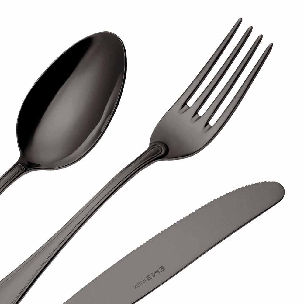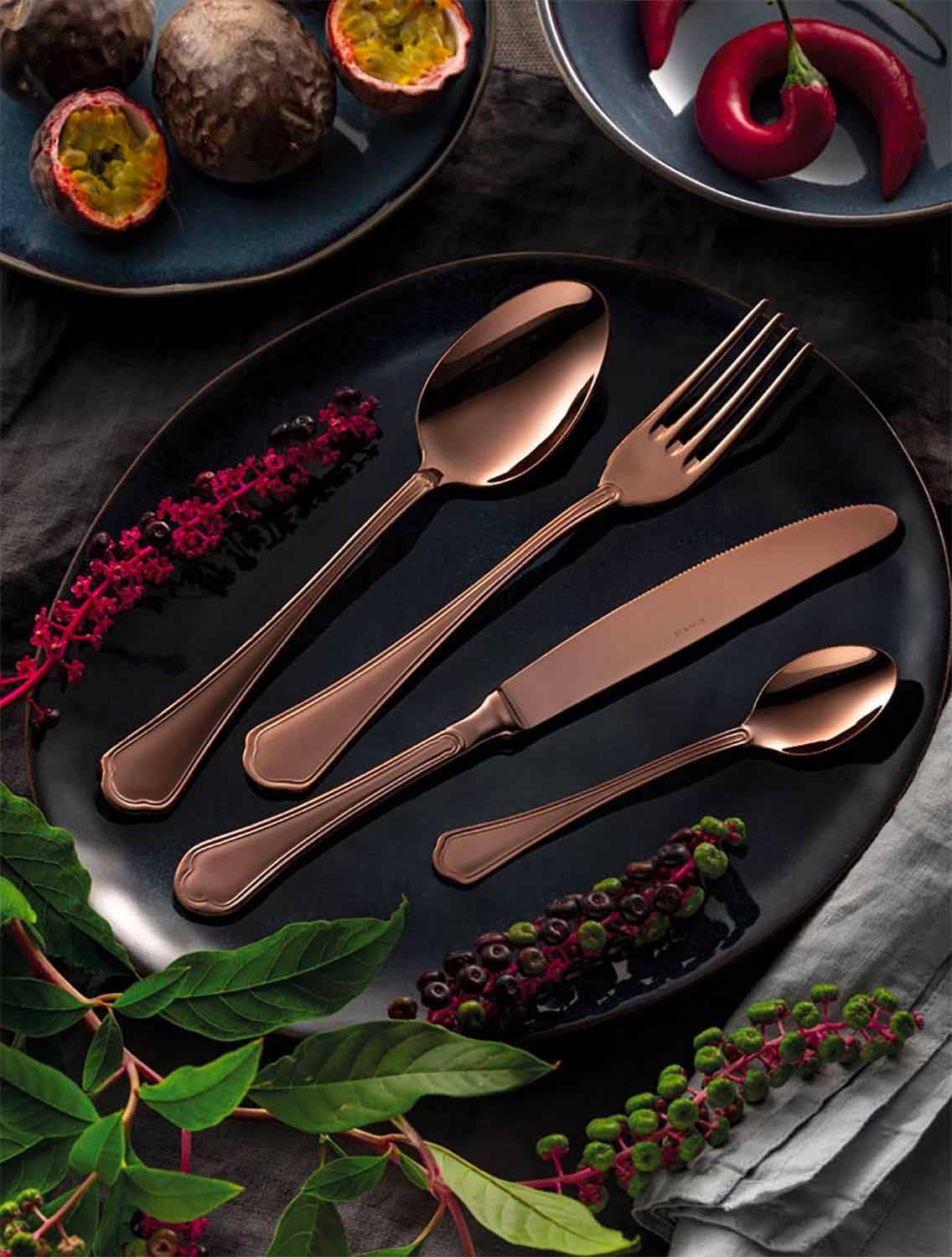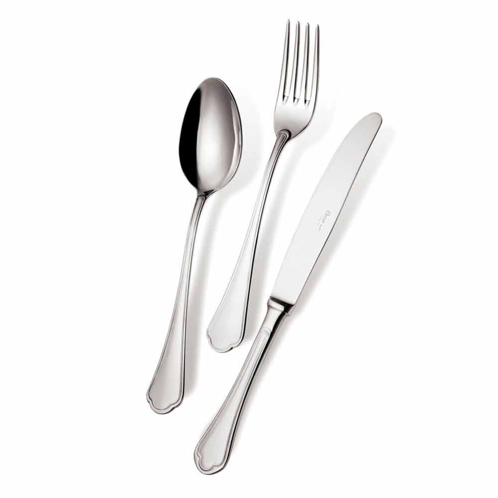 rustfrit stålbestik, dvs. med 18% krom og 10% nikkel, hvilket garanterer fremragende modstandsdygtighed over for korrosion og nem rengøring med en fremragende hygiejnisk koefficient.