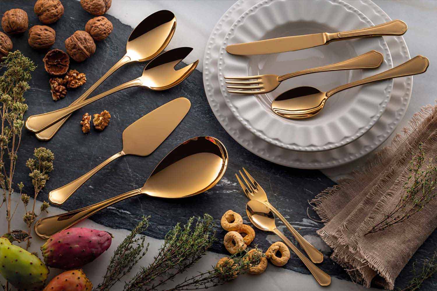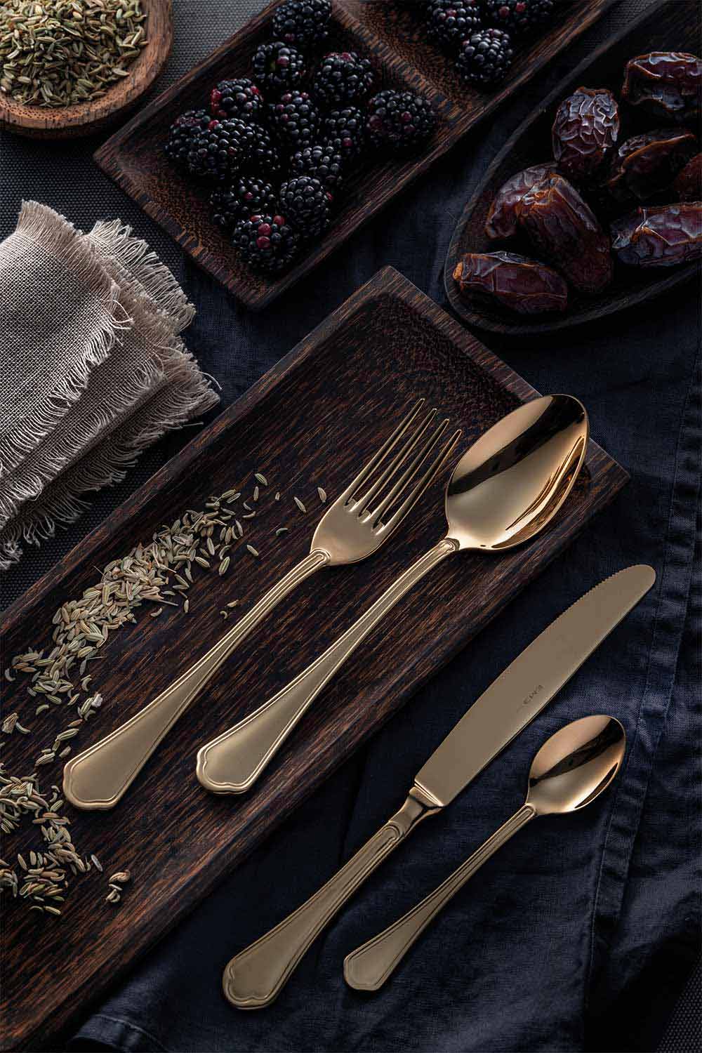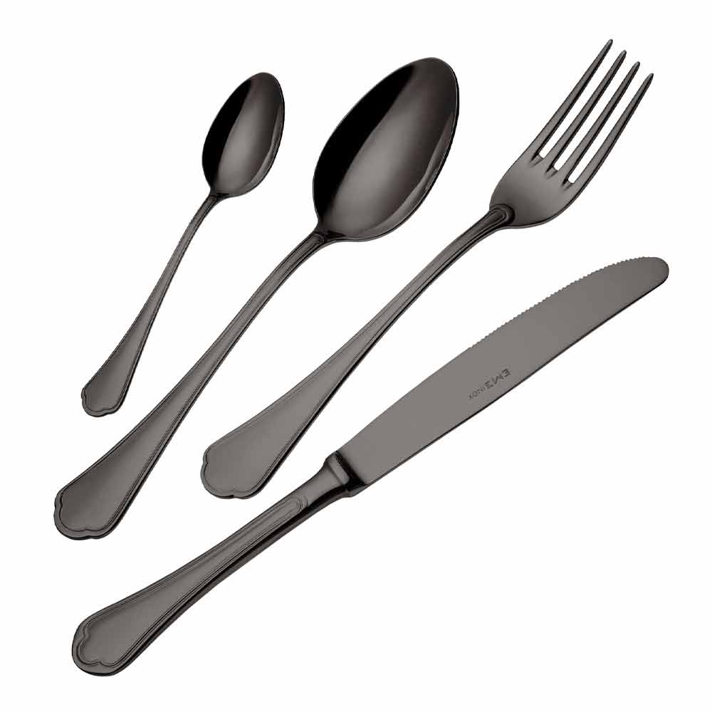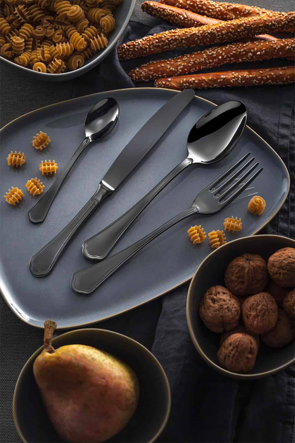 24 bestik i rustfrit stål, komplet sæt i 5 klassiske designfinisher lavet i Italien.