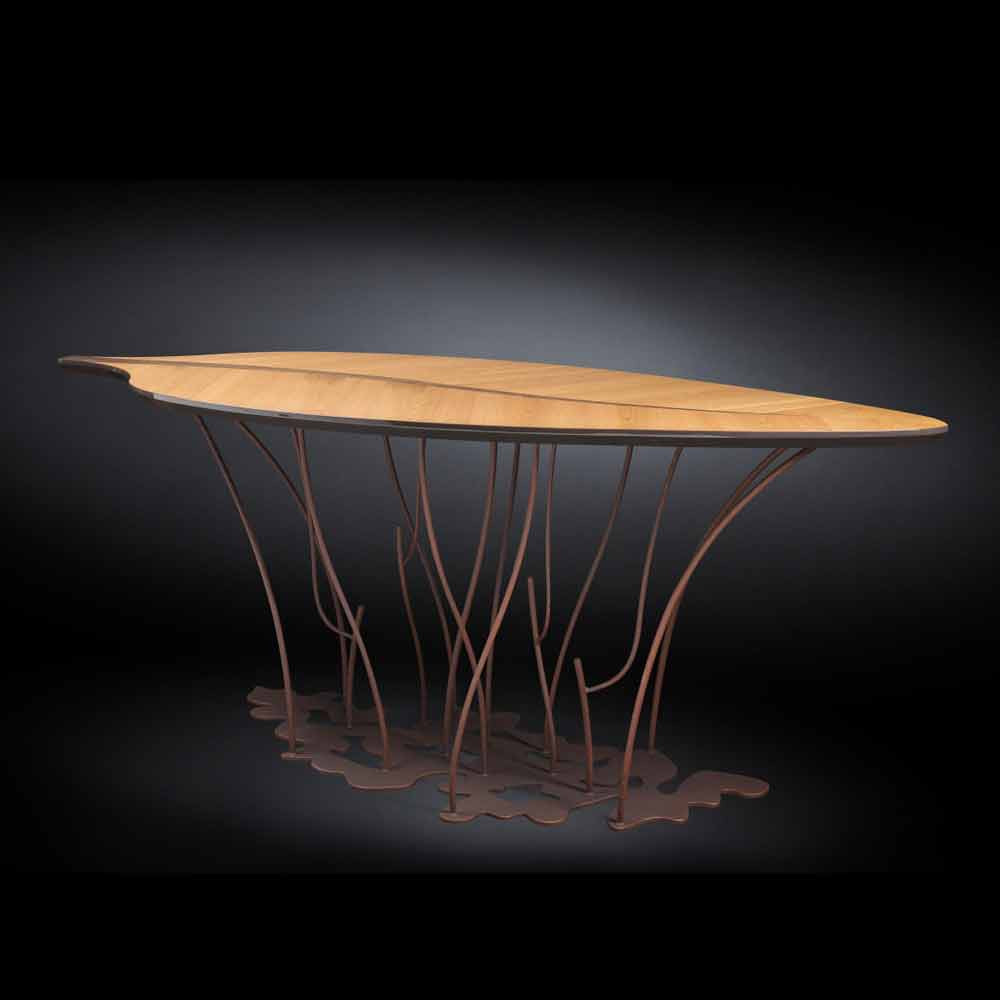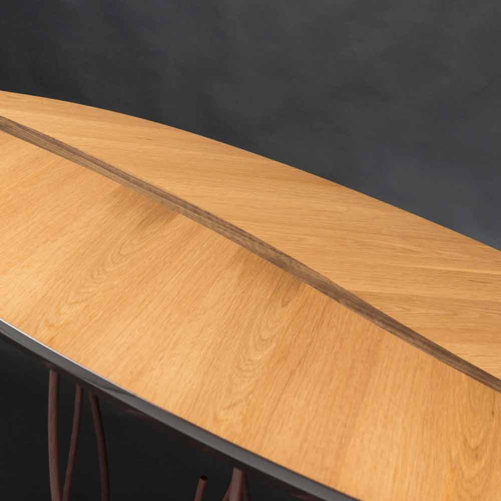 Konsol med et unikt design og uforlignelige, er dens væsentlige kendetegn indkapslet i sin flade, formet, bladformet, lavet i MDF og høj densitet, fineret i eg i en "sildeben", med central indsats i valnød og fuldt færdige polyester børstet forglasset. Dens selvbærende base er en rigtig "skulptur", kendetegnet ved "grene" Corten effekt malet metal. Phoenix bringer det unikke i sit design; i det eg, valnød og stålet smelter ind i en varm og ubrydeligt omfavnelse.