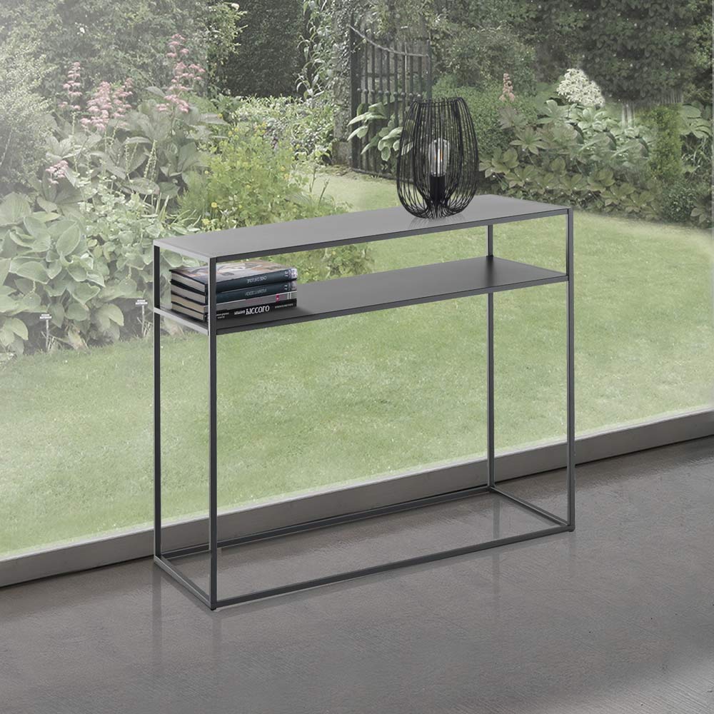 mat antracit malet stål og 1,5 cm høj top og hylde lavet af 1 mm tyk mat