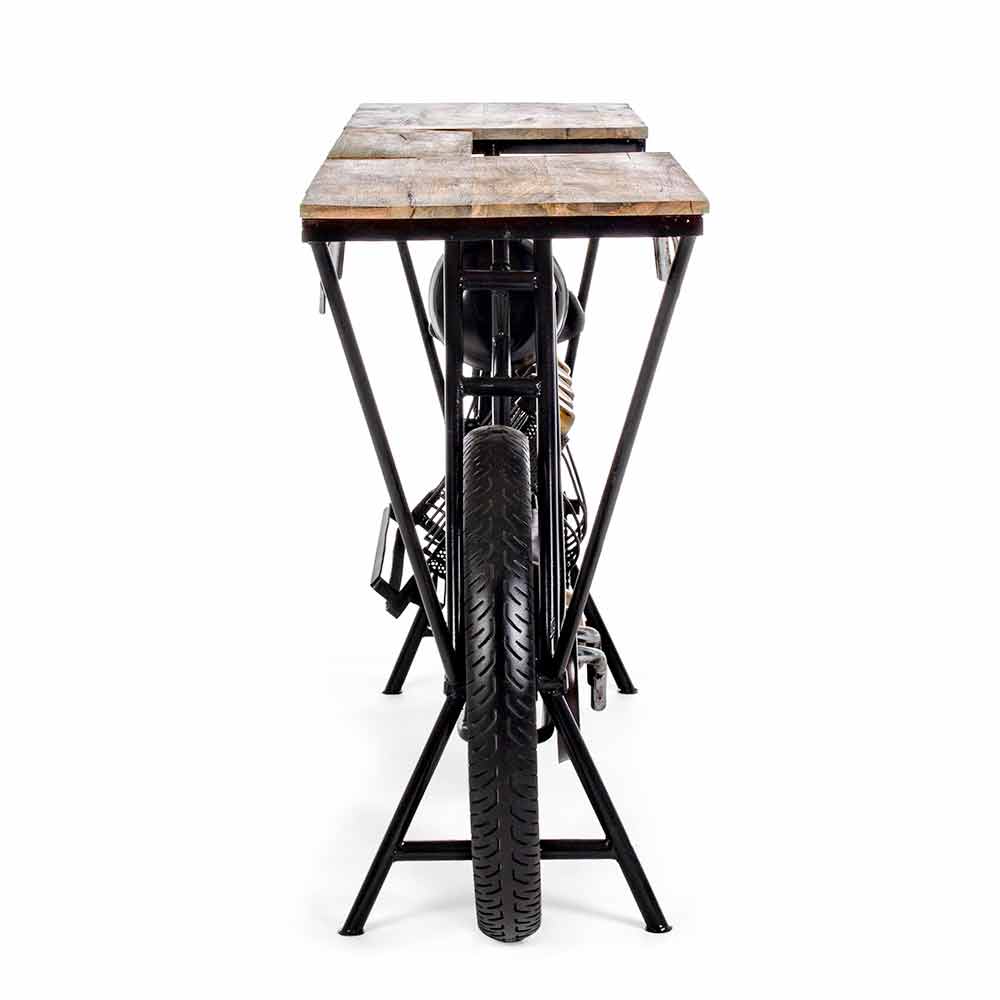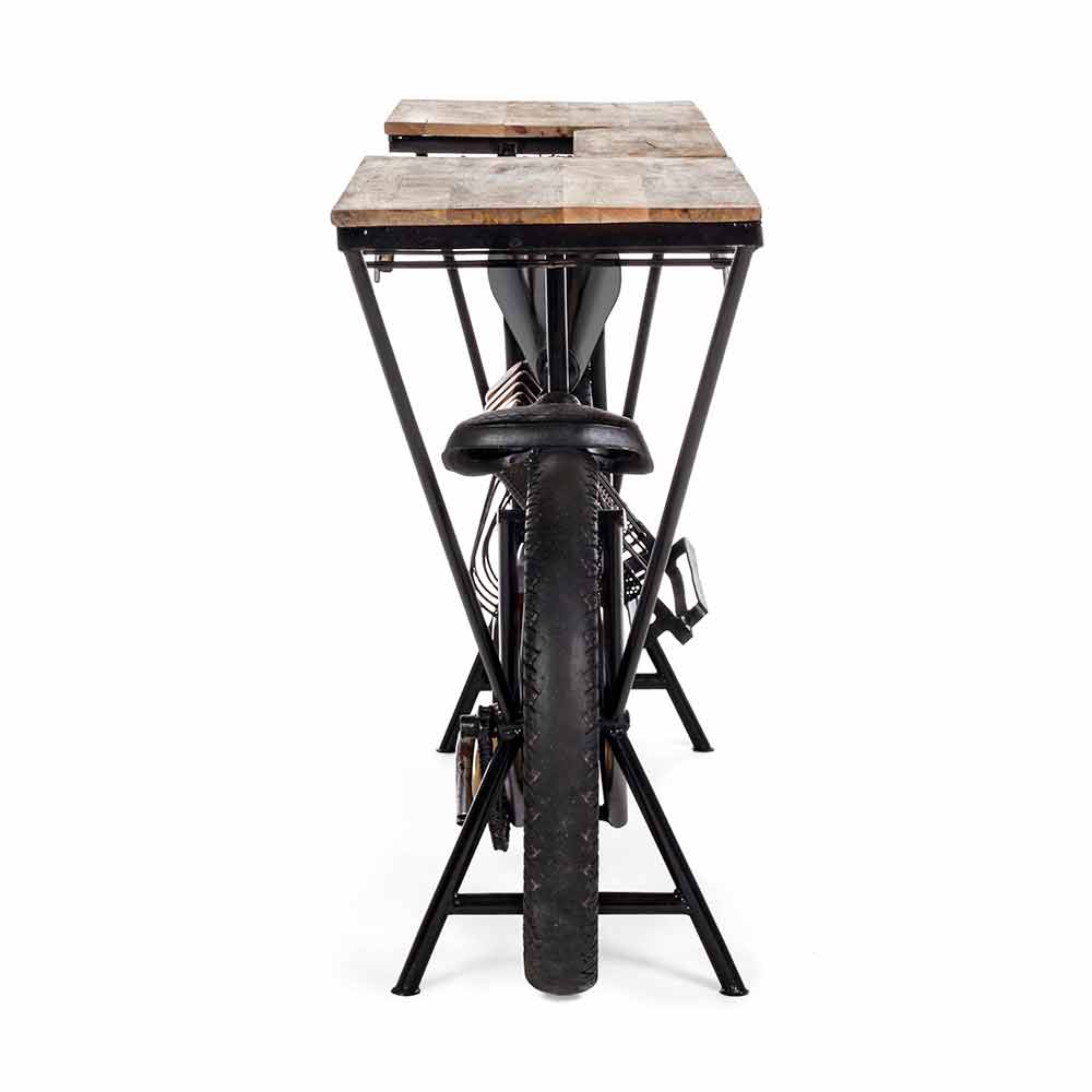 Bunden, inklusive hjul, er lavet af stål , mens toppen er lavet af mangotræ og inkluderer flaskeholdere.