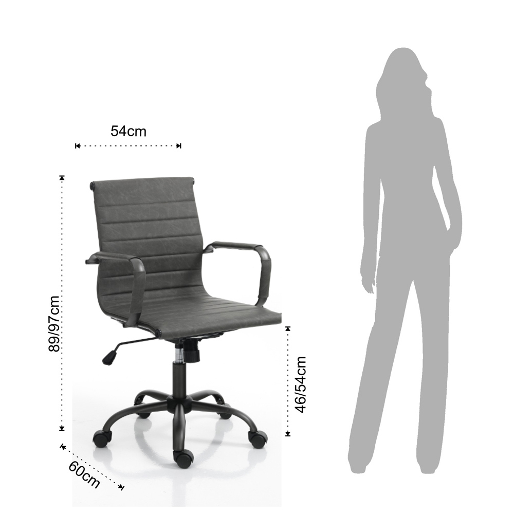 professionel og moderne atmosfære. Tilgængelige størrelser:- længde 54 cm x dybde 60 cm x højde 89/97 cm - sæde: 47x44x46/54 cm - armlænshøjde: 66/74 cm