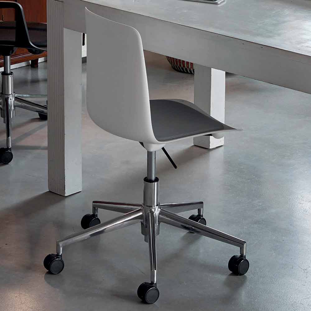 Charita består af et polypropylen sæde fås i 7 forskellige farver og en poleret aluminiumsstruktur , der også er udstyret med en drejelig base for større komfort og større funktionalitet.