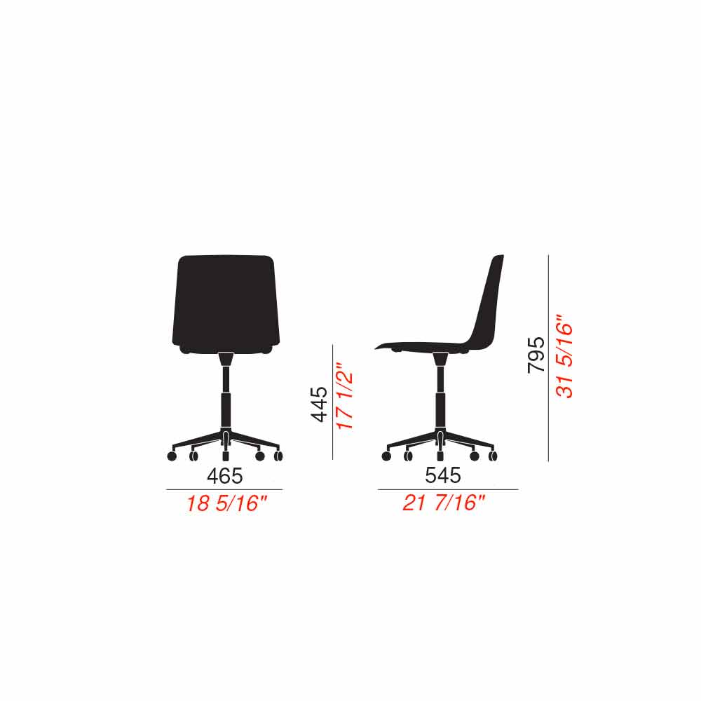 Kontorstol i poleret aluminium og polypropylen med hjul Fremstillet i Italien, 2 stk.