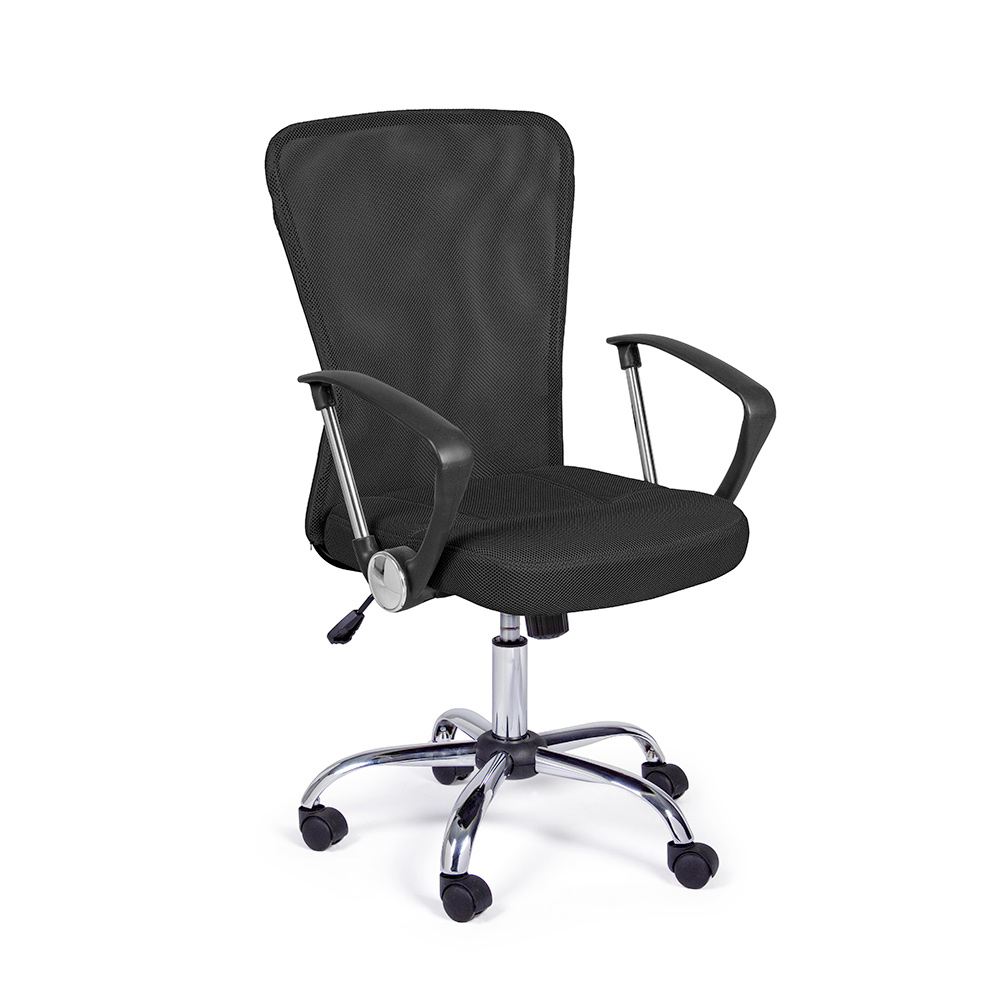 Denne kontorstol er lavet med en solid forkromet stålbund og nylonhjul.