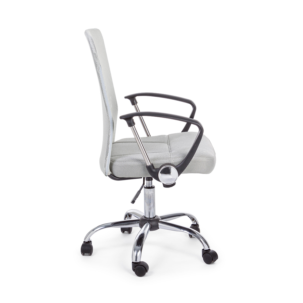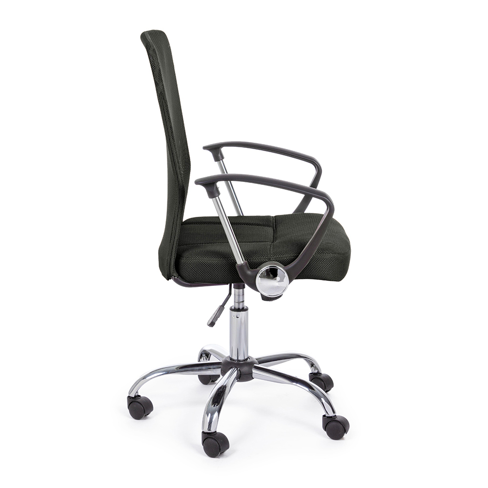 Det højdejusterbare polstrede sæde og ryglæn er betrukket med 100% polyester mesh stof med plast armlæn.