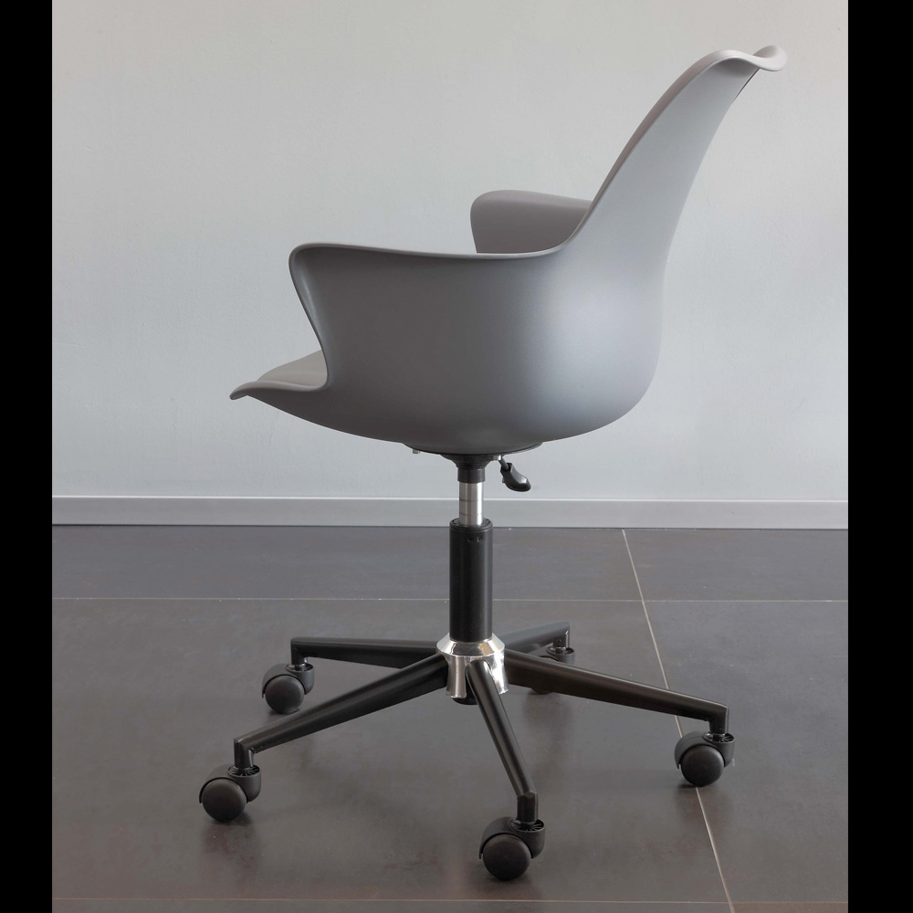 polypropylen. Bløde og omsluttende linjer kendetegner sædet på denne stol, som har til formål at give komfort og bekvemmelighed. Takket være muligheden for at justere højden og de drejelige hjul er det muligt at tilpasse det til bedre at imødekomme personens forskellige behov, så det bliver en komfortabel og funktionel stol for alle.