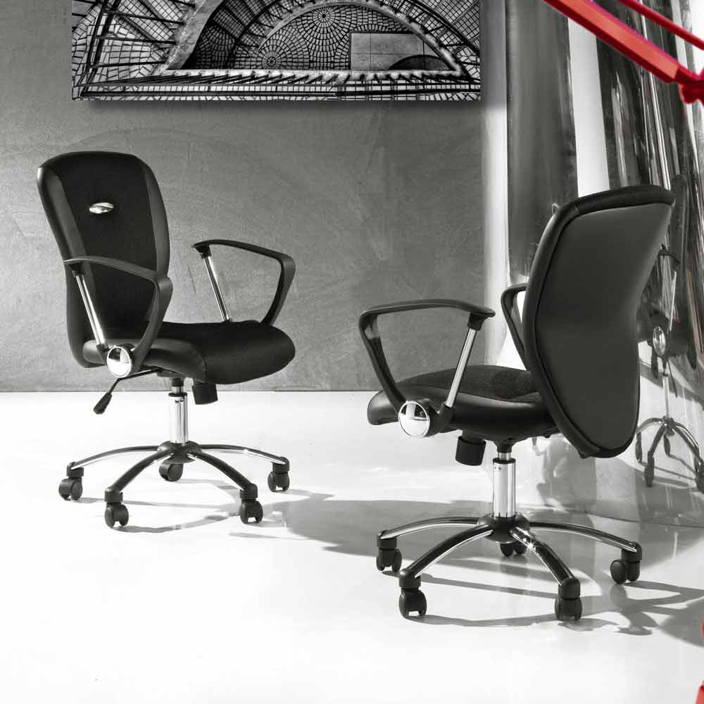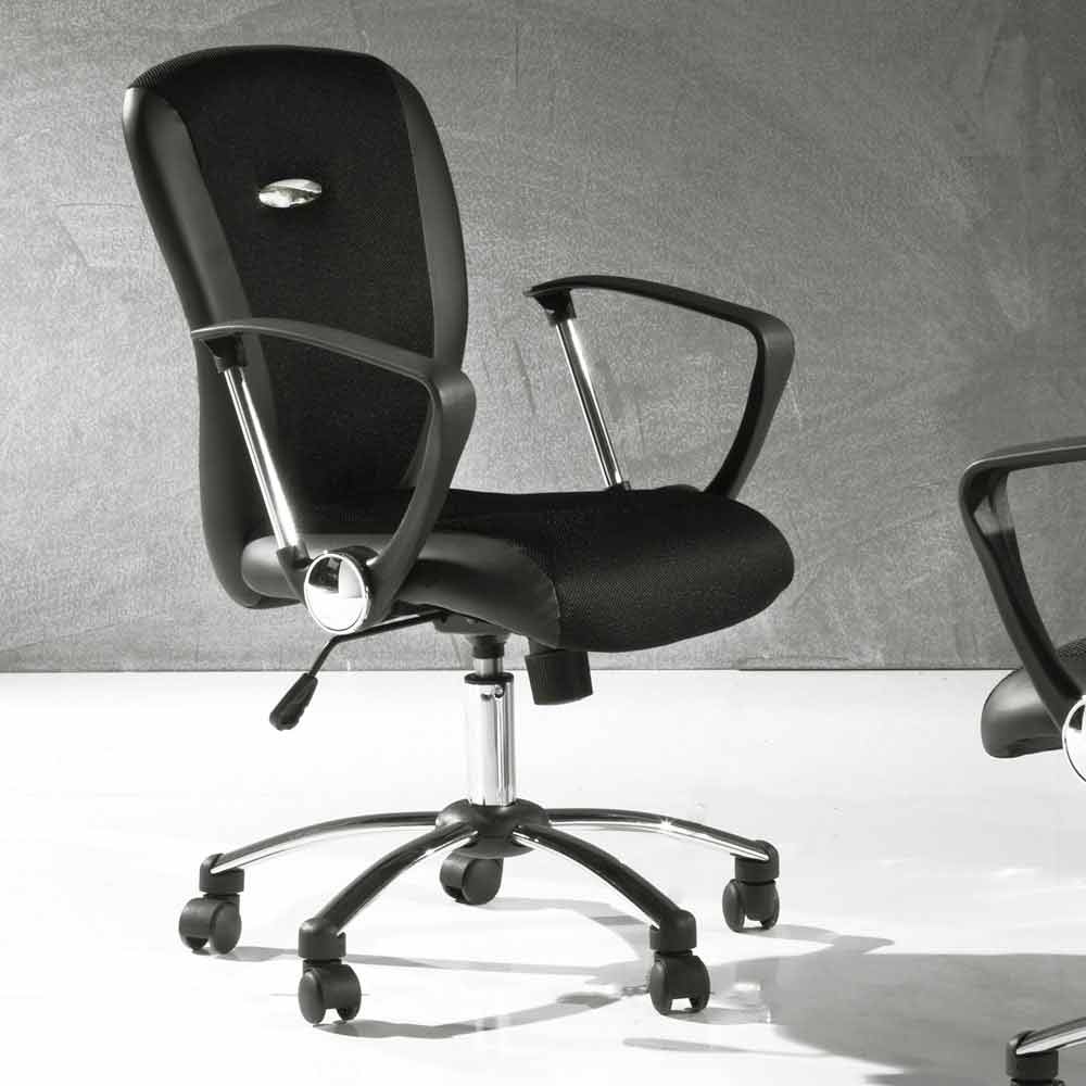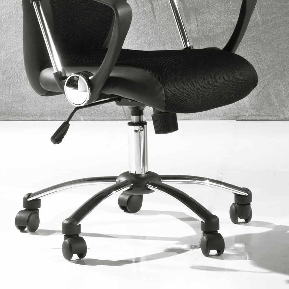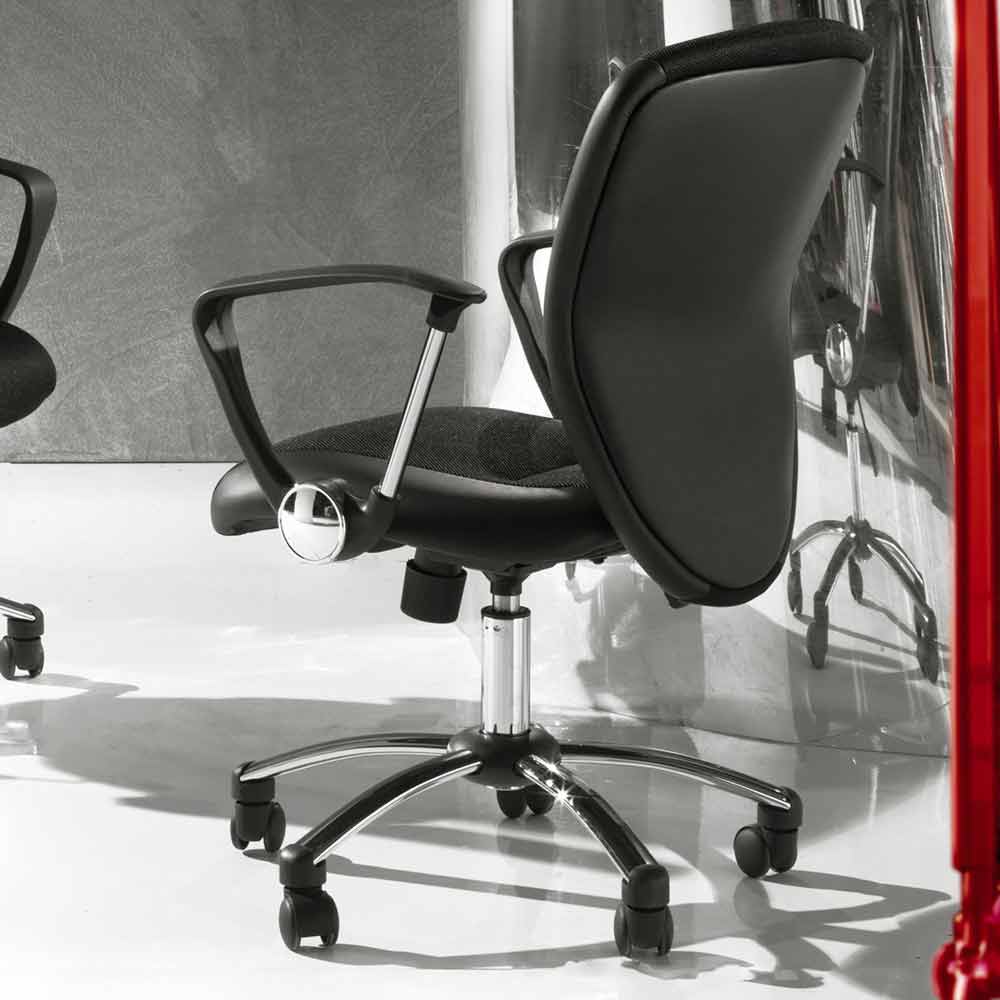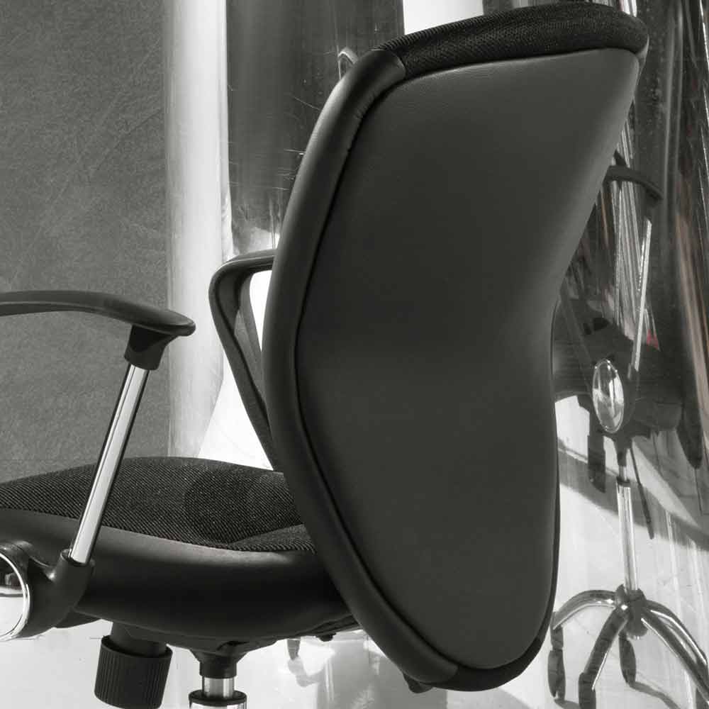 Giovanna-drejelige kontorstol er ideel til at give brugeren bevægelsesfrihed og maksimal komfort; den leveres med et drejesæde med gaslift, forkromet metalstruktur med polyurethanhjul; sæde dækket af sort puma og ryg i sort mikroperforeret technorete.