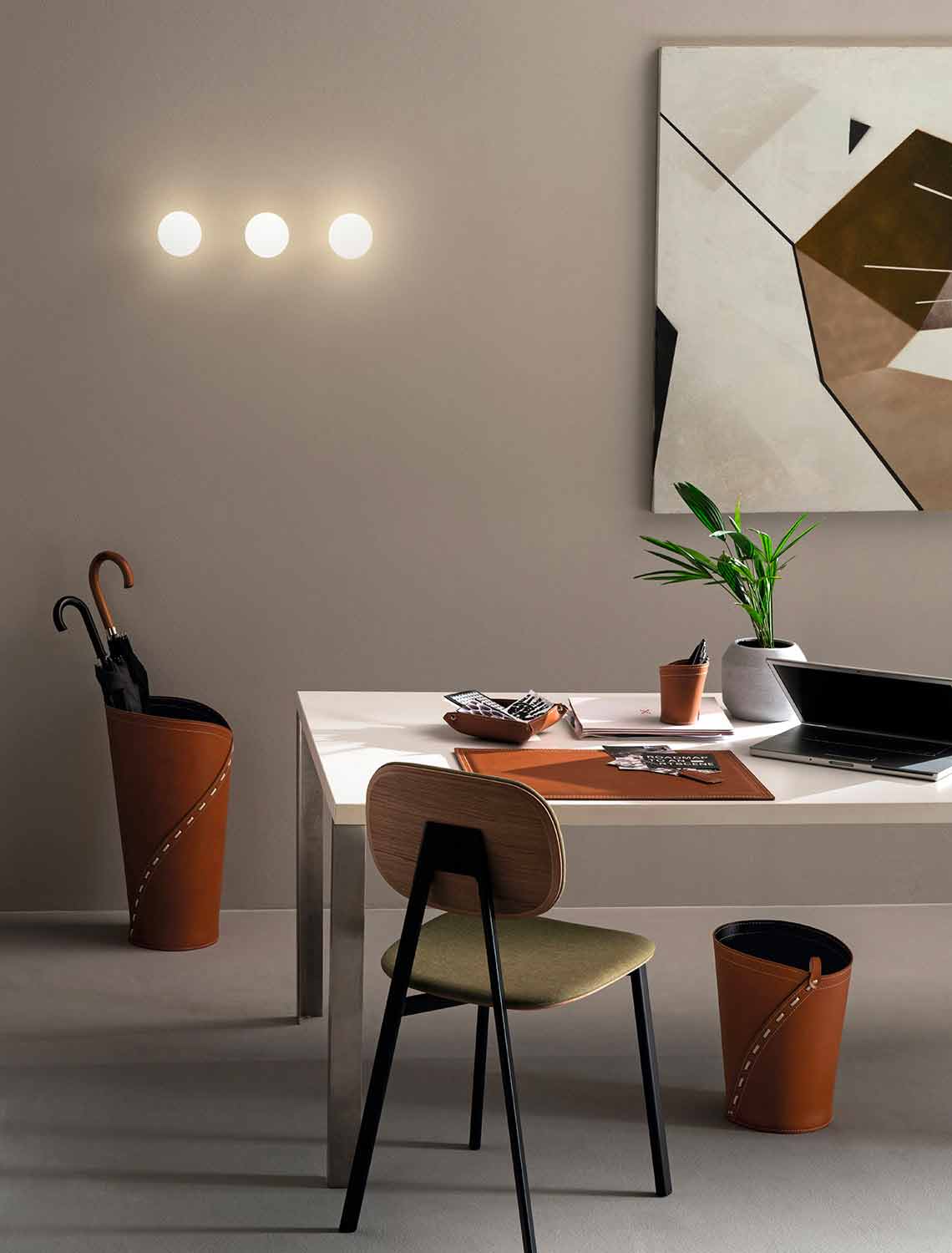 Fremstillet i Italien kontortilbehør med et moderne design, håndlavet i farvet regenereret læder.