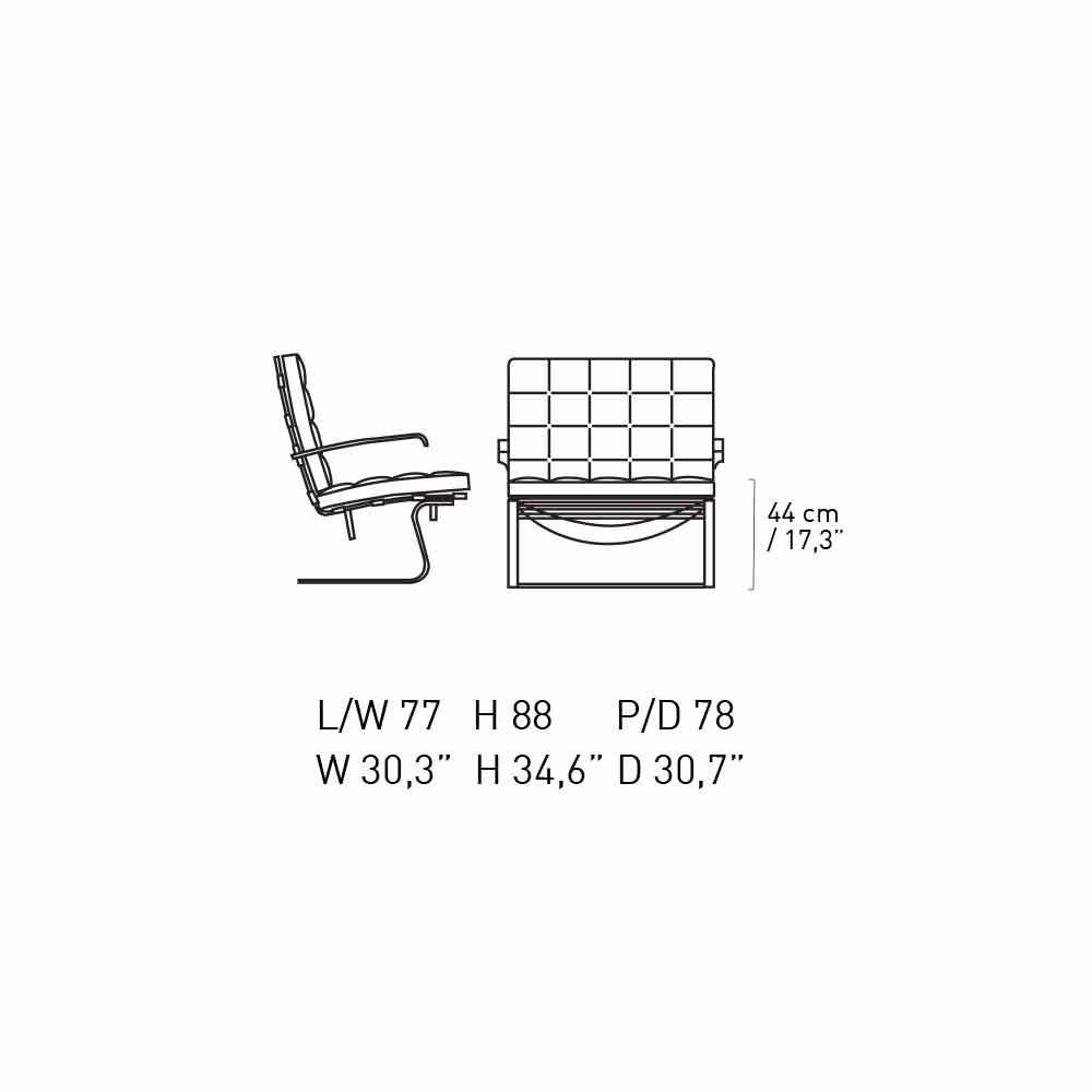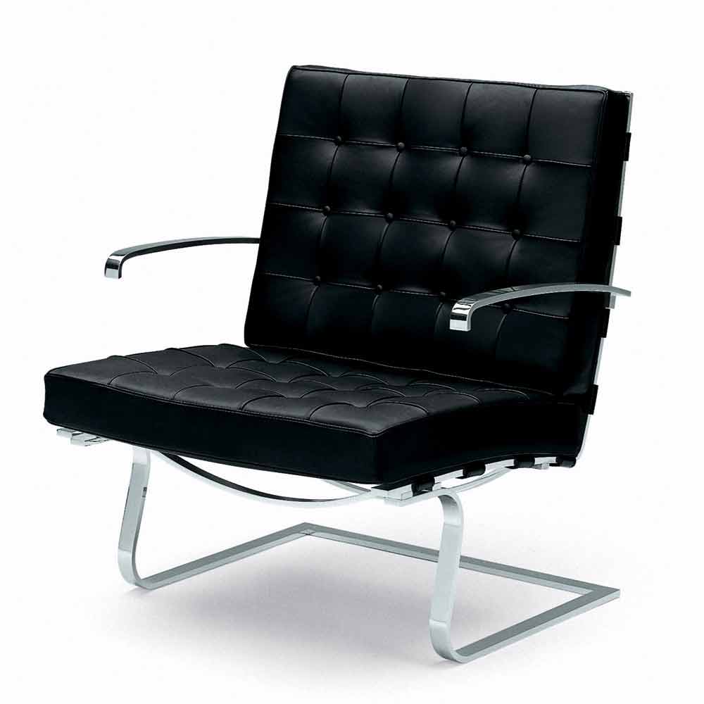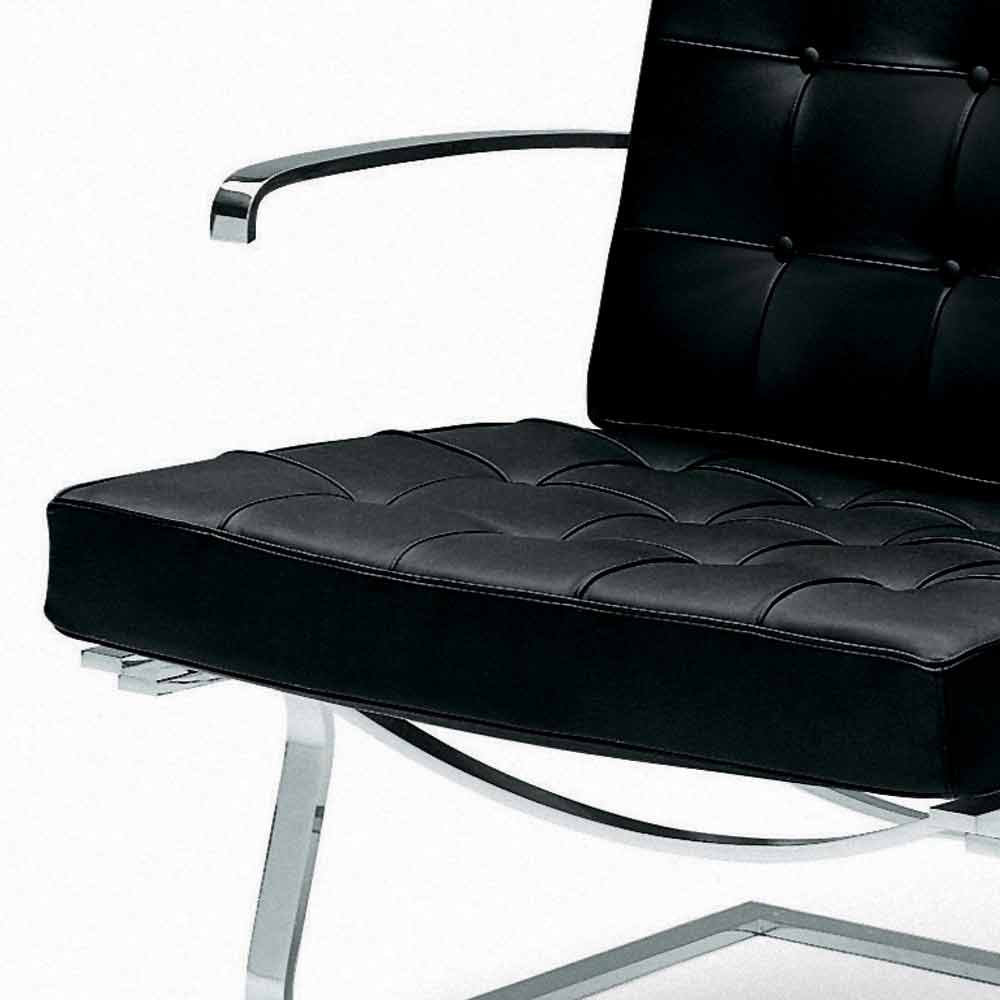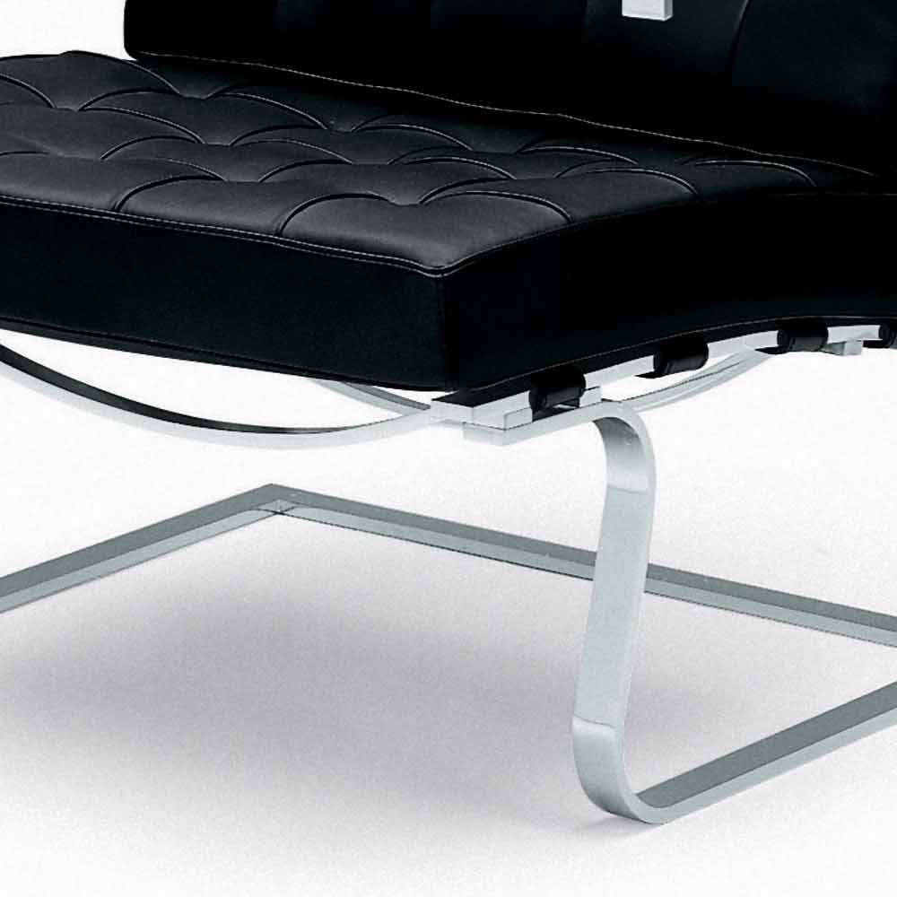 stel af forkromet stål , hynder i polyurethanskum og foring i polyesterfiber, understøtningsremme i læder og udvendigt betræk i læder, helt