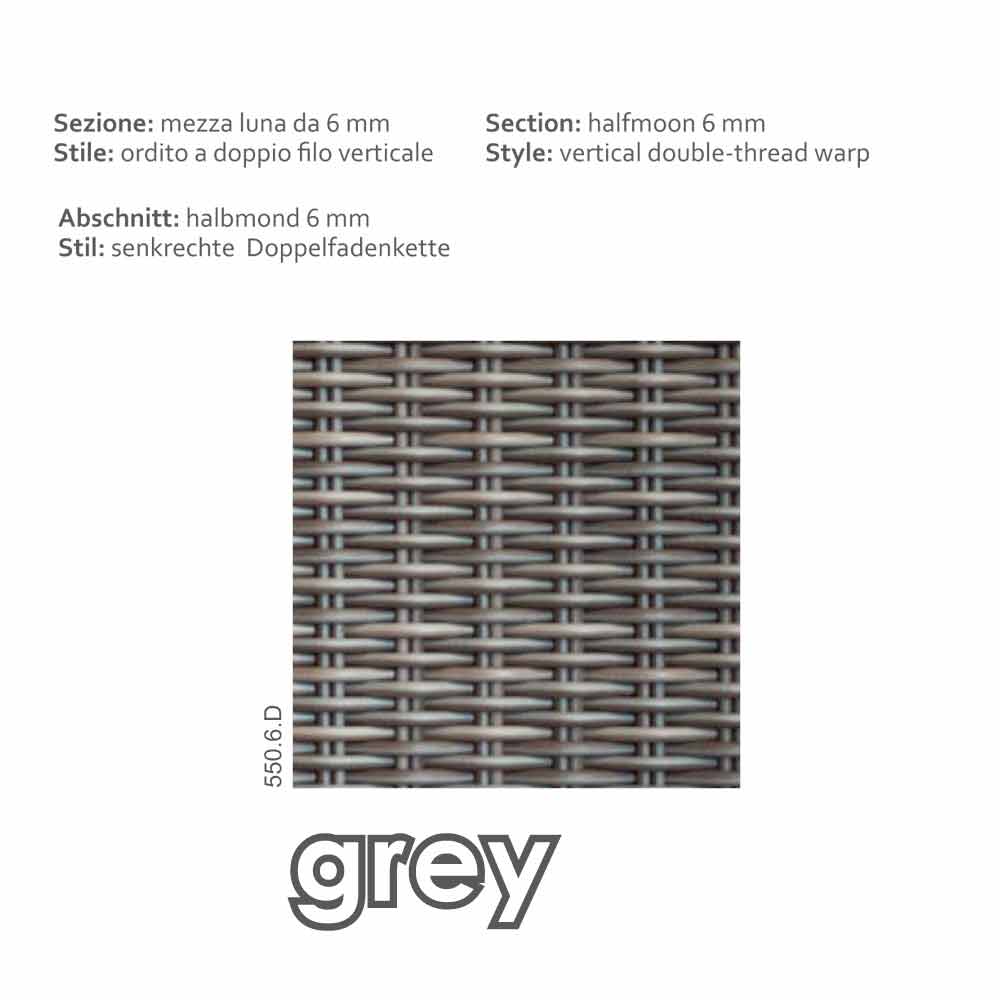 Elsa udgøres af en aluminiumsramme og en struktur fremstillet af polyethylen af høj kvalitet halvmåne, i grå finish - taupe 6 mm, helt hånd vævet.