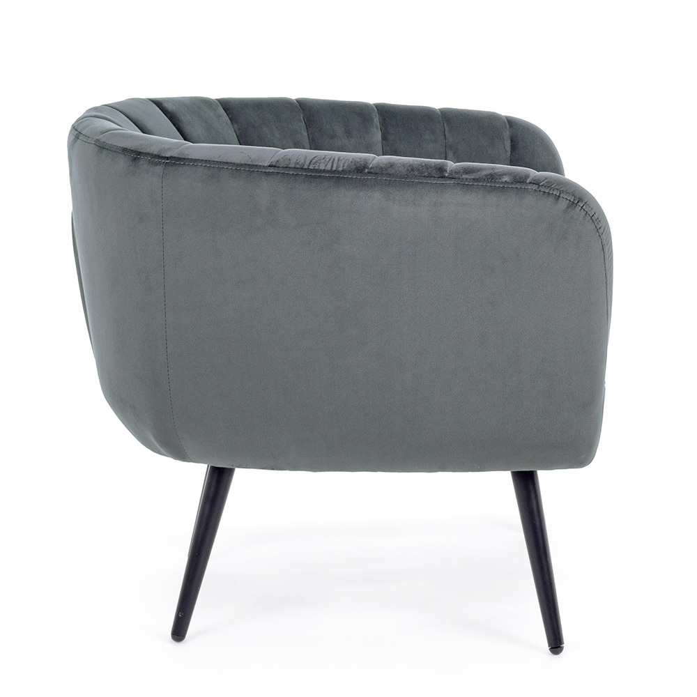 Lænestol i stål og grå eller blå fløjl skandinavisk design - Hilary