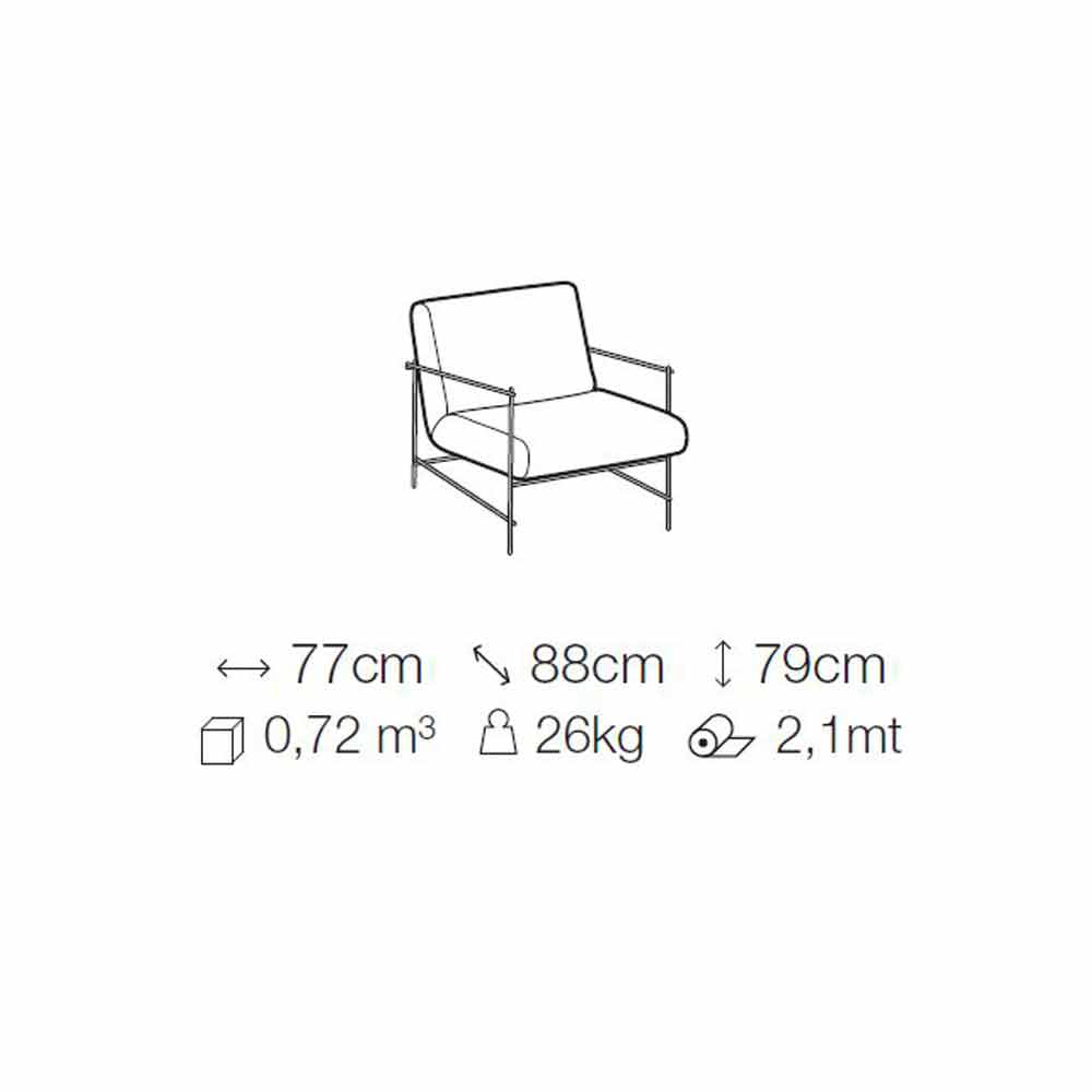 malet metalstruktur , skal i træplader i træ og hynder betrukket med ikke-deformerbart polyurethanskum dækket af Tecnoform. Sæde og ryg i helt aftageligt