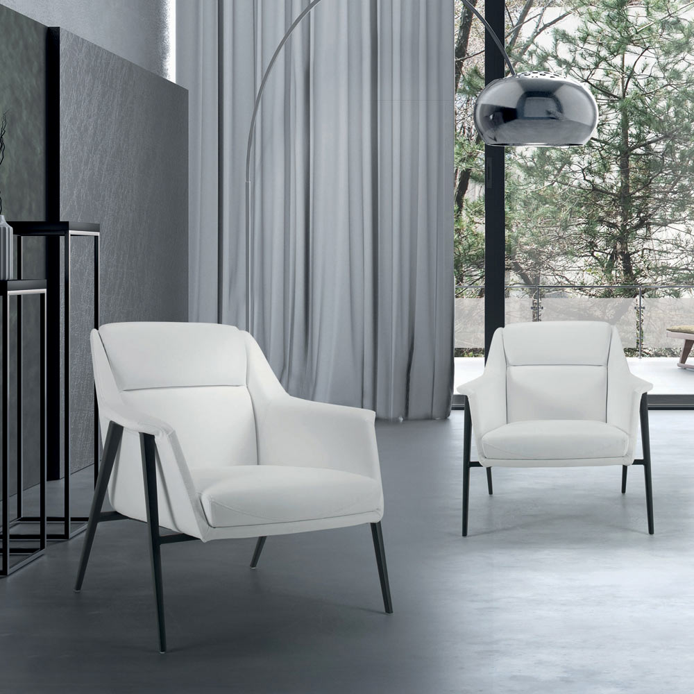 Stål stue lænestol betrukket med øko-læder Made in Italy