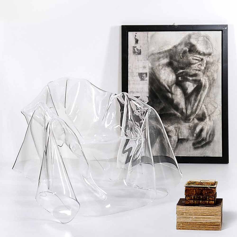 Paris draperet stol er et unikt stykke, en 'værk af' moderne kunst. Fra en plade af rene jomfru polymer 100% transparent PMMA plexiglaskasser helt draperet med hånden, er det født en unik stol og unikt. Stolen er helt selvbærende og kan rumme 1 person. De fysiske og tekniske karakteristika plexiglaskasser (chok, stress-resistente, holdbare, varmeisolerende) gøre denne artikel et komplement af praktisk og funktionel møbler, egnet til ethvert miljø. Lysstyrken og lysstyrken forblive konstant og uændret over tid. Plexiglass PMMA fra jomfru polymer anvendes ved ikke-toksisk, hypoallergen, lugtfri og antibakteriel. Genanvendeligt 100%. Udtænkt, designet og fremstillet i Italien, med italienske materialer.