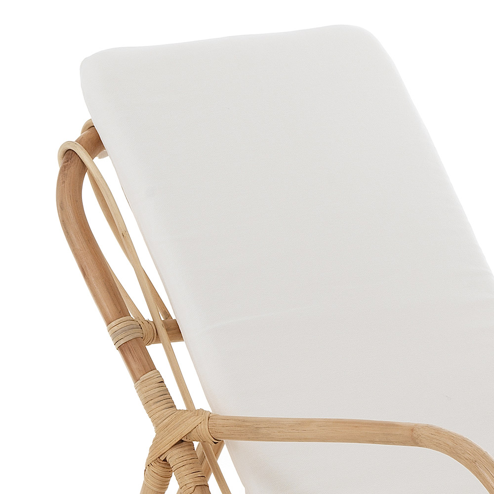 Denne lænestol er legemliggørelsen af fred og komfort . Med sin rattanstruktur, der minder om naturens skønhed og enkelhed, og de bløde bomuldspuder, tilbyder den en oase af ro og et elegant strejf af stil . Perfekt til afslapning, denne lænestol er designet til at tilføje en dimension af absolut komfort til dit udendørsområde.
