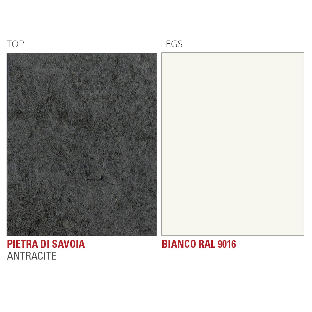 aluminium lakeret med epoxypulver, hvid finish. En enkel og minimal indretningsidé, som takket være sin lille størrelse giver mulighed for at berige og indrette selv de mindste rum med personlighed. Dens særegenhed er den vidunderlige top, som giver produktets æstetik sin elegance og den grundlæggende funktionelle side takket være en