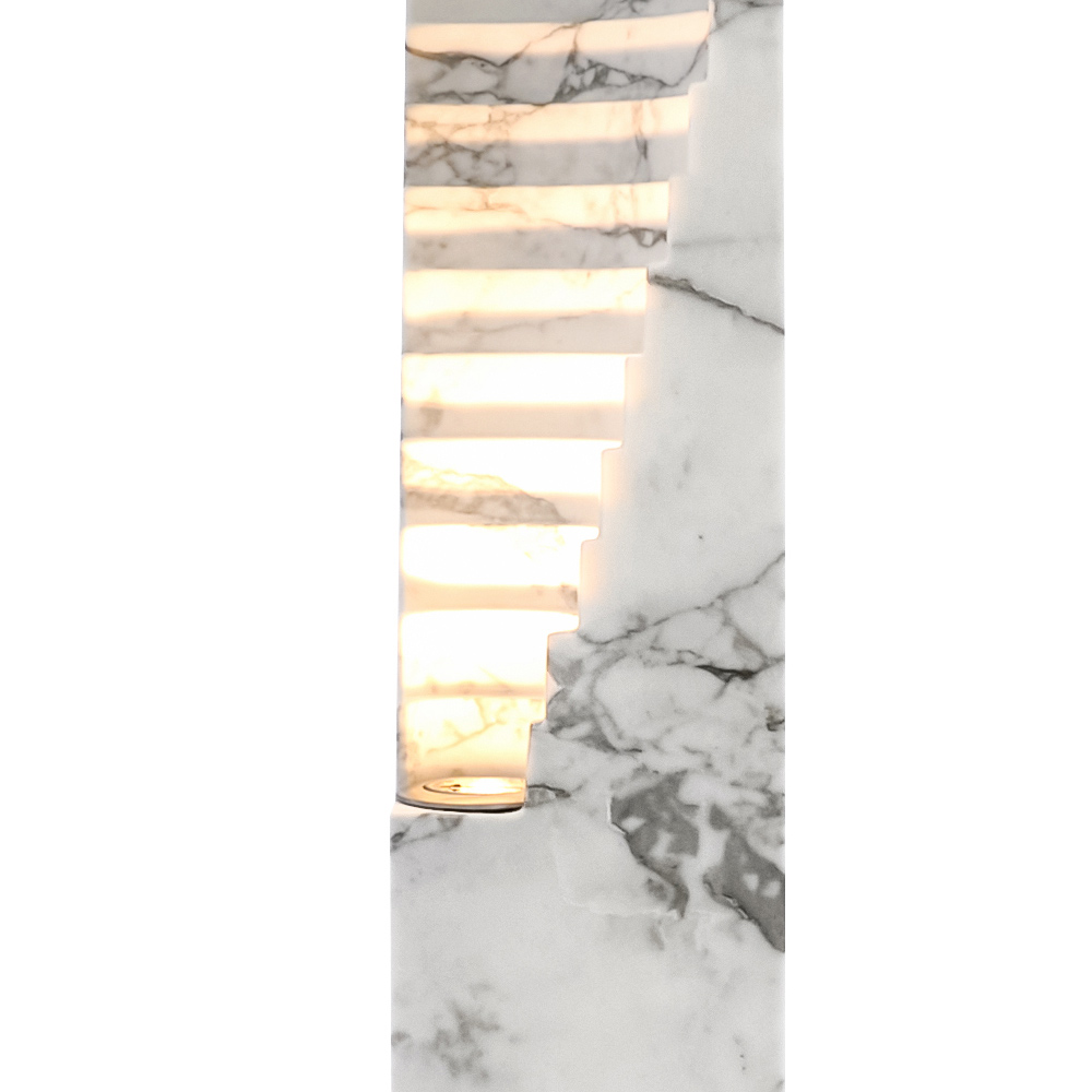 Denne lampe er ikke bare en belysningsenhed, den er en lysskulptur , der kombinerer traditionen med marmor med den moderne smag for minimalisme. Ideel til dem, der leder efter kvalitet , passion for detaljer og kærlighed til Made in Italy , de vil finde deres maksimale udtryk i dette møbel.