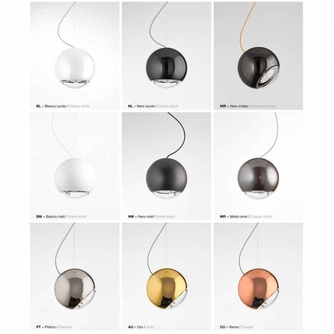 Den fås også i følgende farver: poleret hvid, mat hvid, poleret sort, mat sort, metal kobber, sort iriserende, platin, guld og kobber.