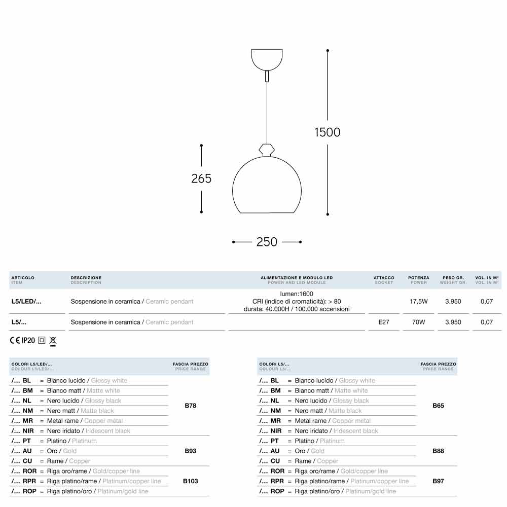 Lampe keramisk suspension The Lustri 5, steg til 2 udgange ved 180 °