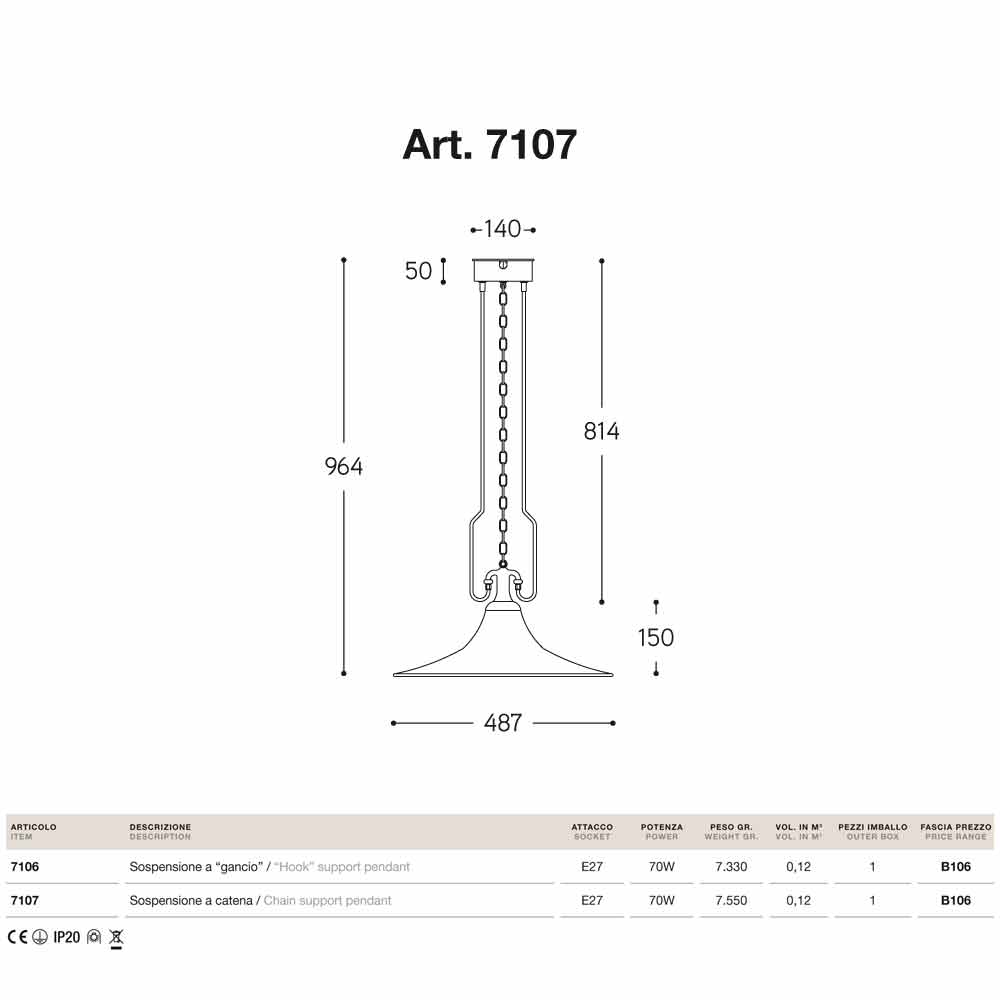 Vægt con gancio 7330 gr, con catena 7550 gr