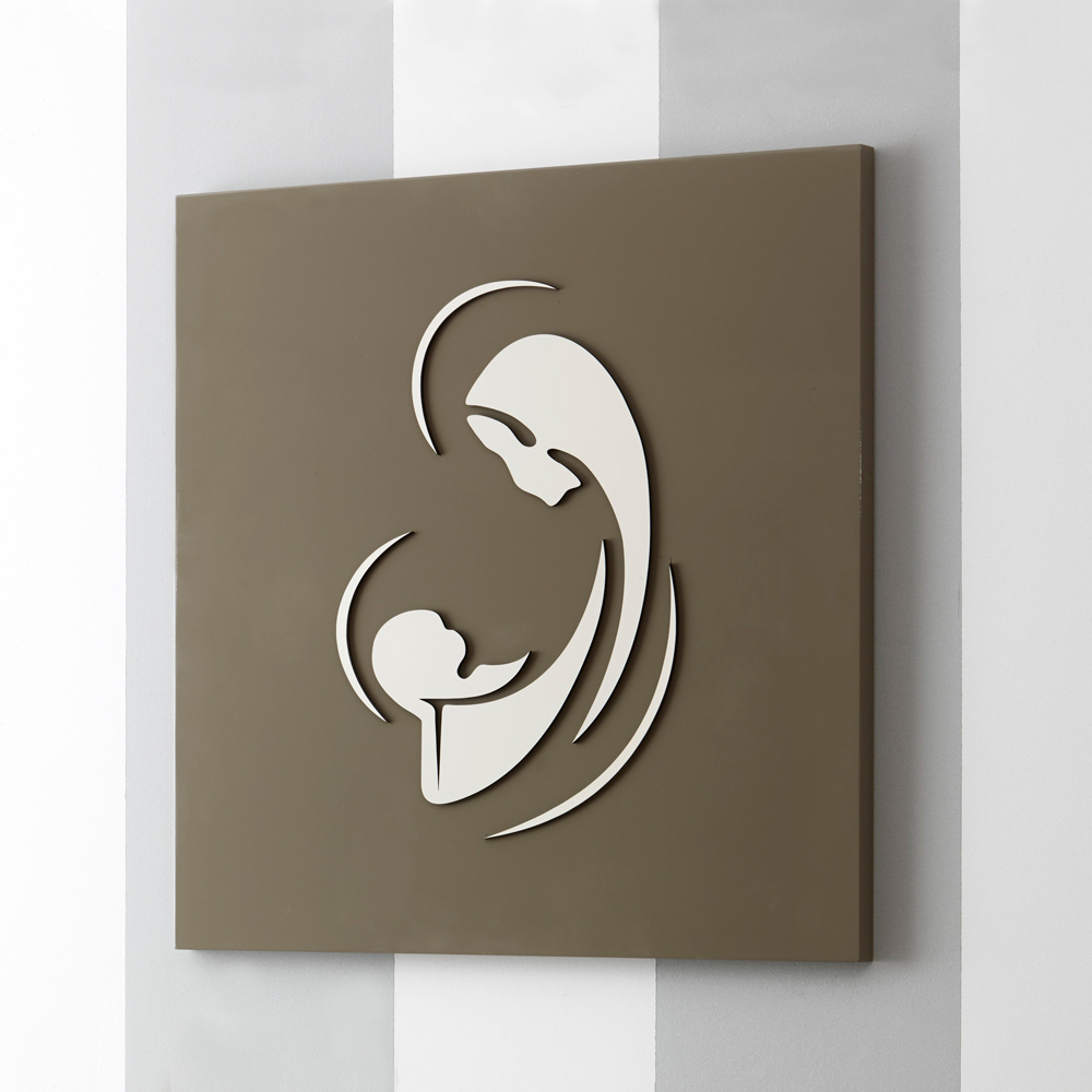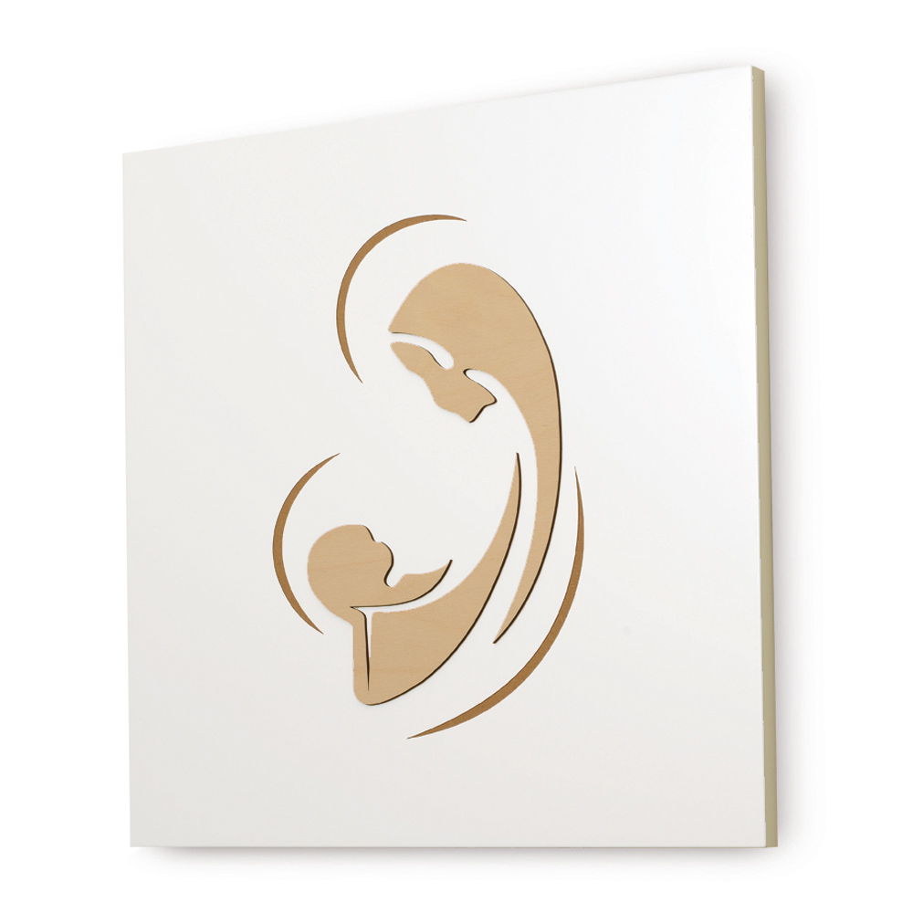 Al sødme fra Madonnaen, der omfavner og ser på sit barn, er indeholdt i denne hellige og religiøse repræsentation. De enkle og essentielle finish fremhæver denne følelse og følelse, og valget af farvekombinationer giver dig mulighed for at tilfredsstille alle designbehov.