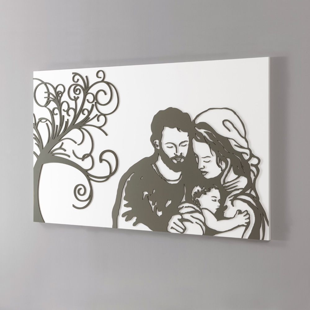Dette maleri er resultatet af italiensk håndværk, faktisk er figurerne tegnet i hånden og derefter malet med laserstrålens lys, uden spild og med respekt for miljøet. Det er beregnet til at repræsentere familiens sødme kombineret med symbolet på livets træ for at vække en stærk og intens følelse hos dem, der observerer det.