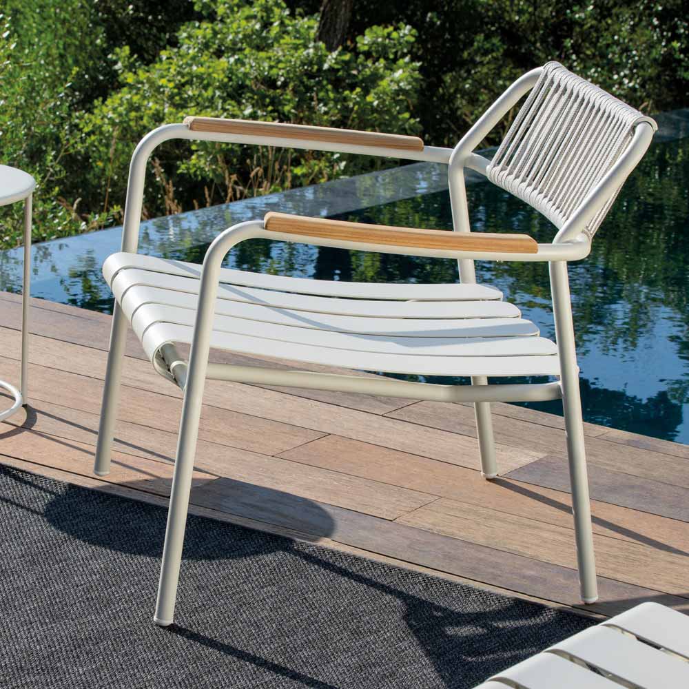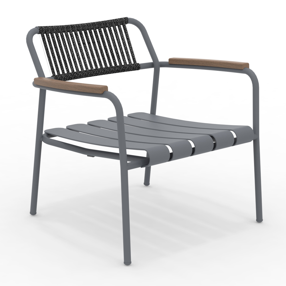 Den lette, men robuste struktur er designet til at tilbyde den bedste komfort, med et ergonomisk sæde og en formet ryglæn i reb , der sikrer en behagelig og afslappende støtte. Aluminiumslamellerne giver et dynamisk og moderne udseende, mens finishen tilføjer et strejf af elegance og raffinement.