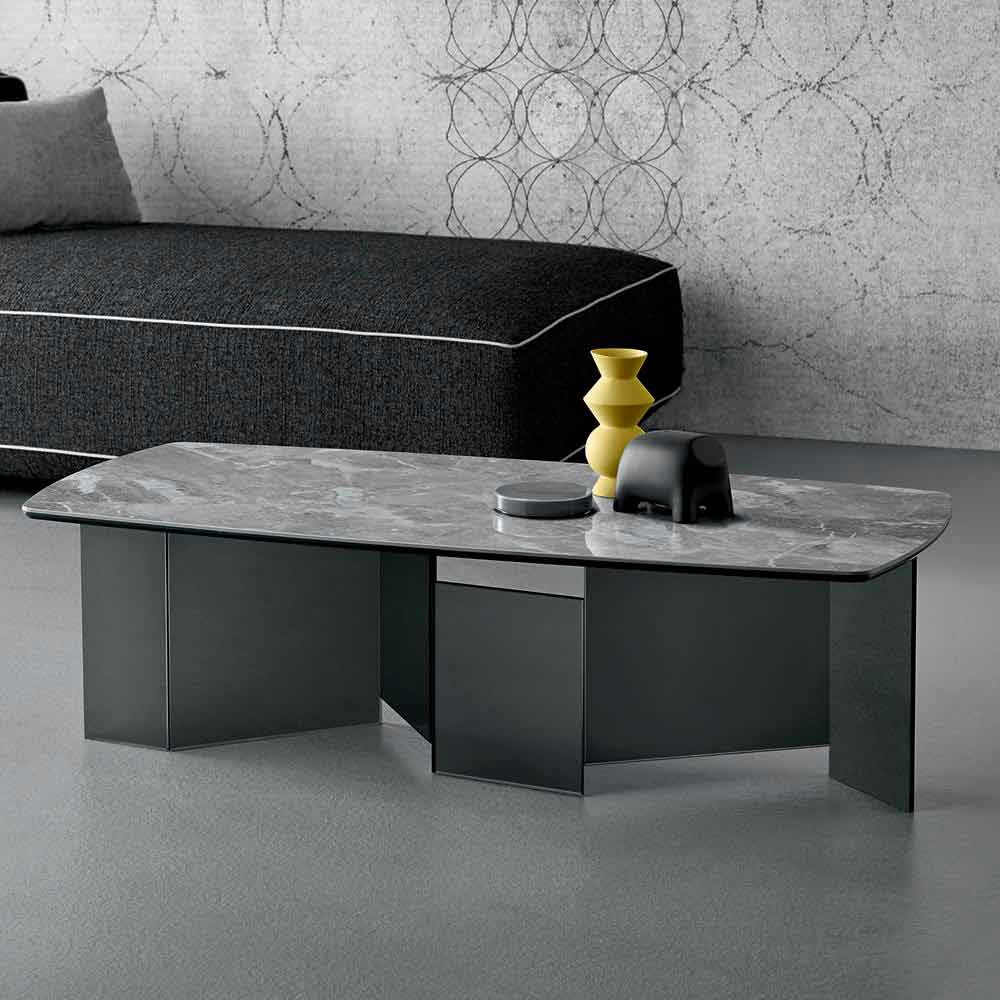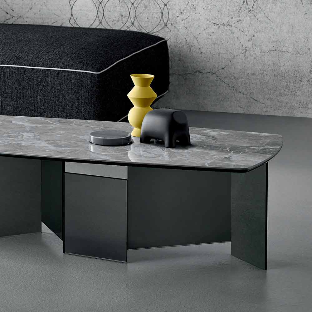 Lavet af røget glas til bunden og en blank orobisk grå keramisk top , det er et møbel, der er håndlavet i Italien med materialer af høj kvalitet, der er ideelle til opholdsstue.