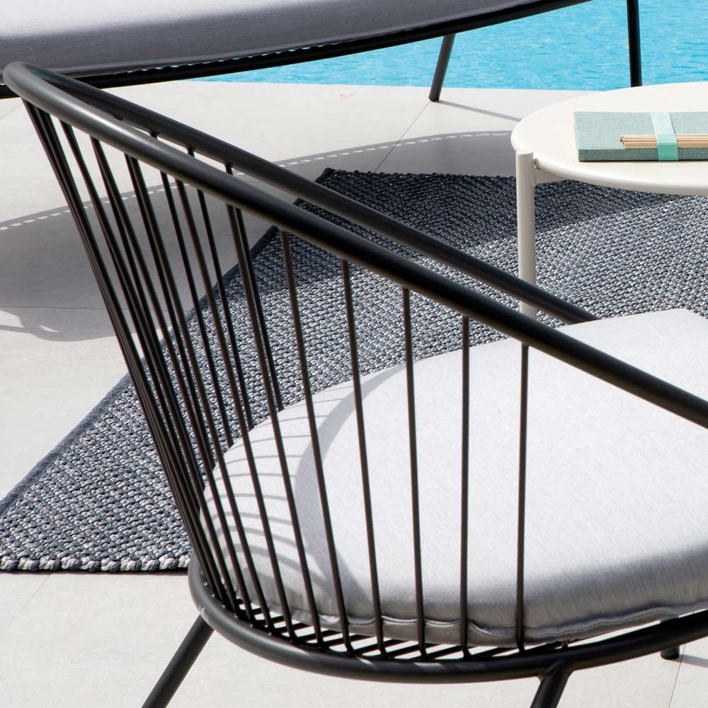 modstandsdygtighed over for korrosion fra atmosfæriske stoffer såsom regnens surhed eller saltindhold, hvilket gør lænestolen til et perfekt element til at møblere ethvert åbent rum.