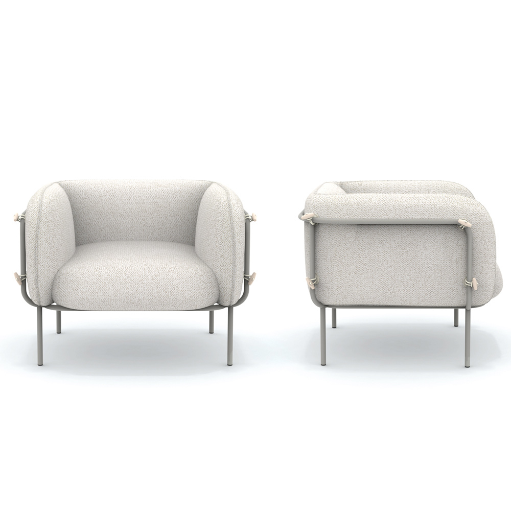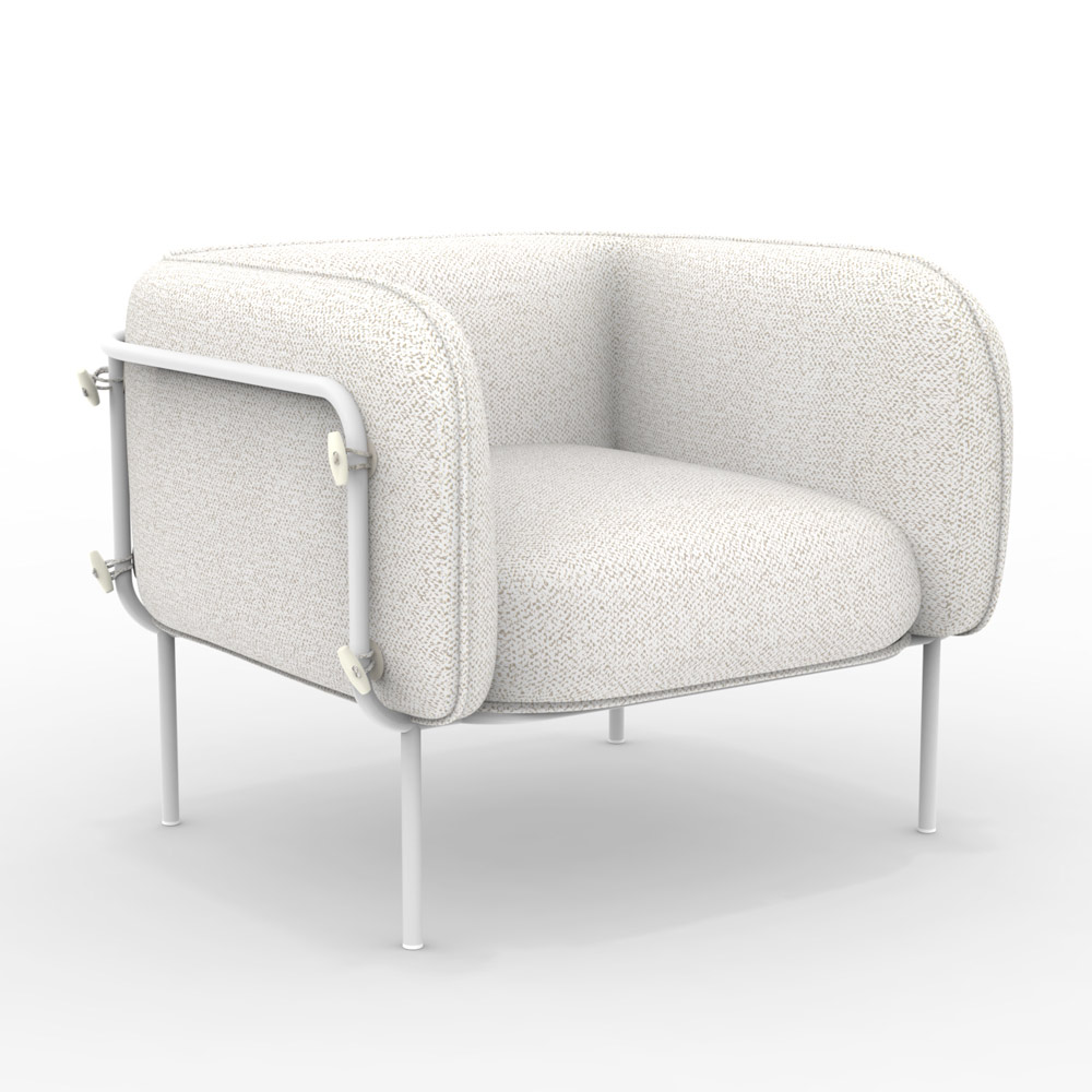 vandtætte og UV-bestandige stof omslutter en blød polstring, der indbyder til øjeblikke med ægte afslapning. De tilgængelige stoffinisher passer harmonisk ind i omgivelserne, reflekterer sollyset og bidrager til at skabe en atmosfære af ro og stil. Placeret ved siden af en glitrende pool eller i et grønt hjørne af haven, er denne stol et løfte om langvarig komfort og skønhed, der trodser tiden.