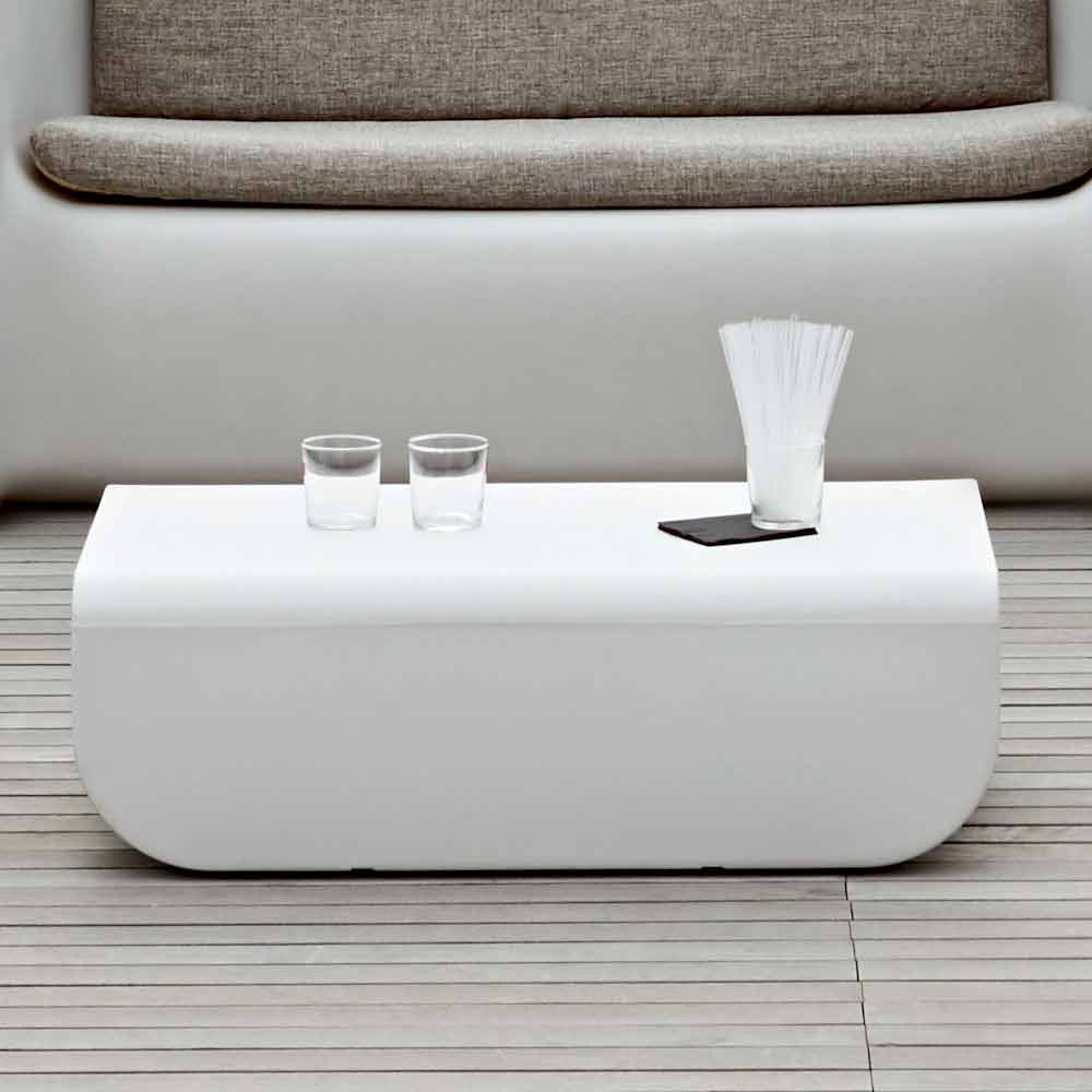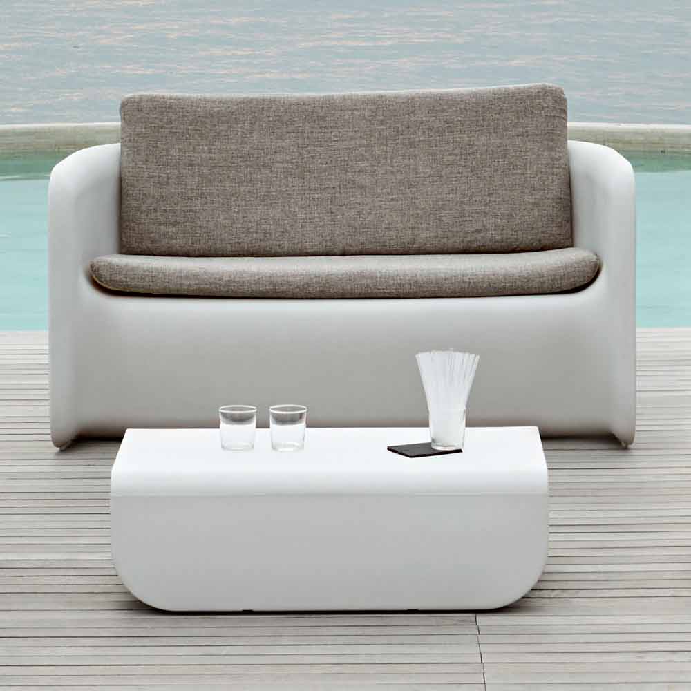 Moderne havelounge, sofa og design sofabord i polyeasy lavet i Italien.