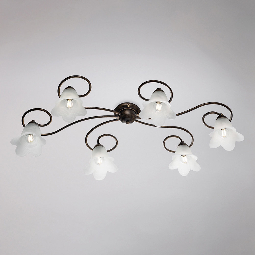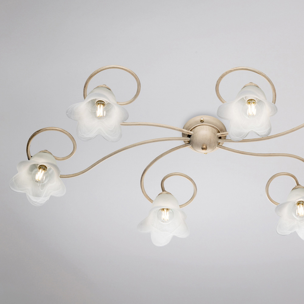 De omhyggeligt udvalgte materialer – jern og glas – giver en elegant effekt og et behageligt lysudbytte. Denne loftlampe, der er fremstillet i Italien, er resultatet af omhyggeligt håndværk, der forbedrer både æstetik og funktionalitet.