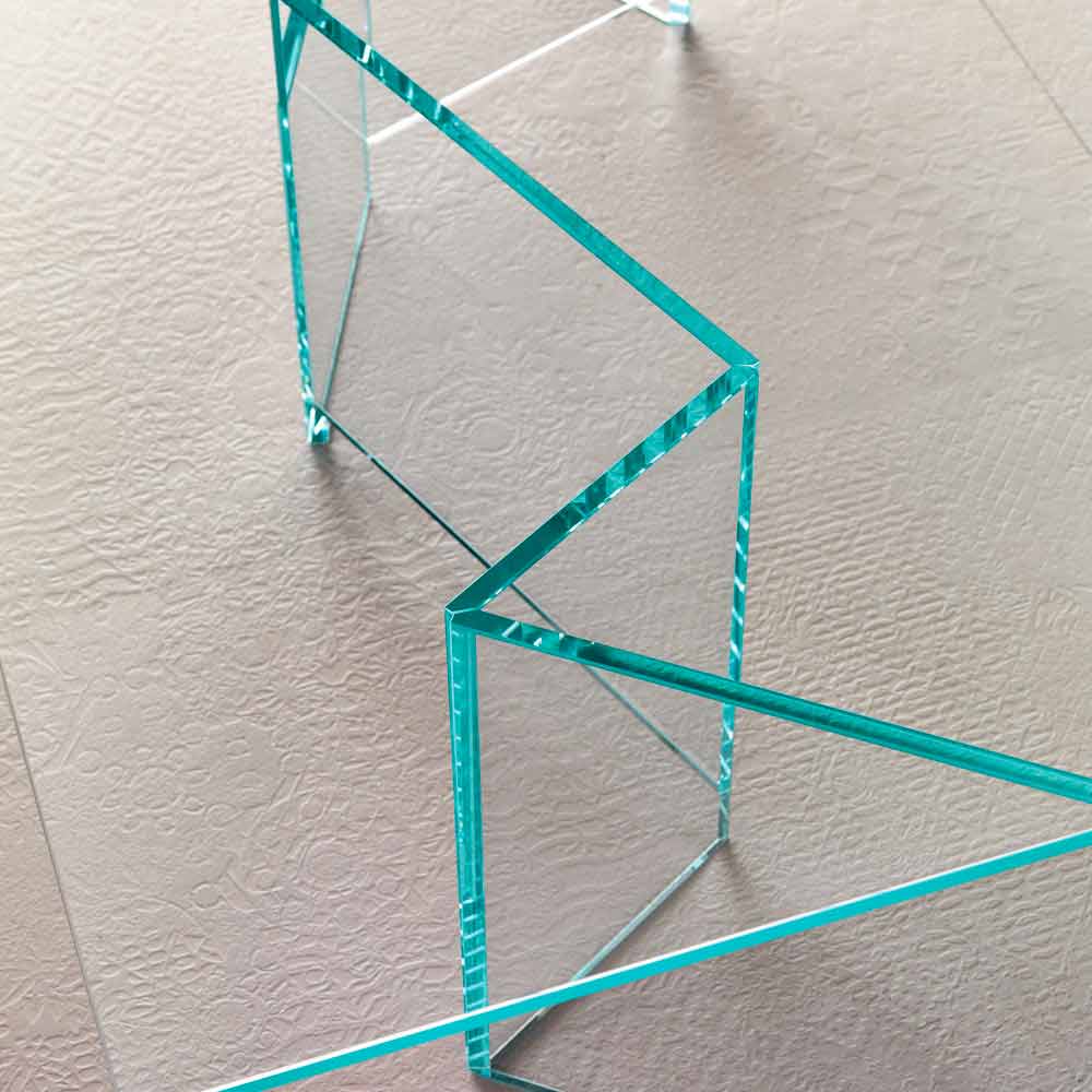 Lavt bord i ekstra klart glas i 2 størrelser, høj kvalitet fremstillet i Italien.