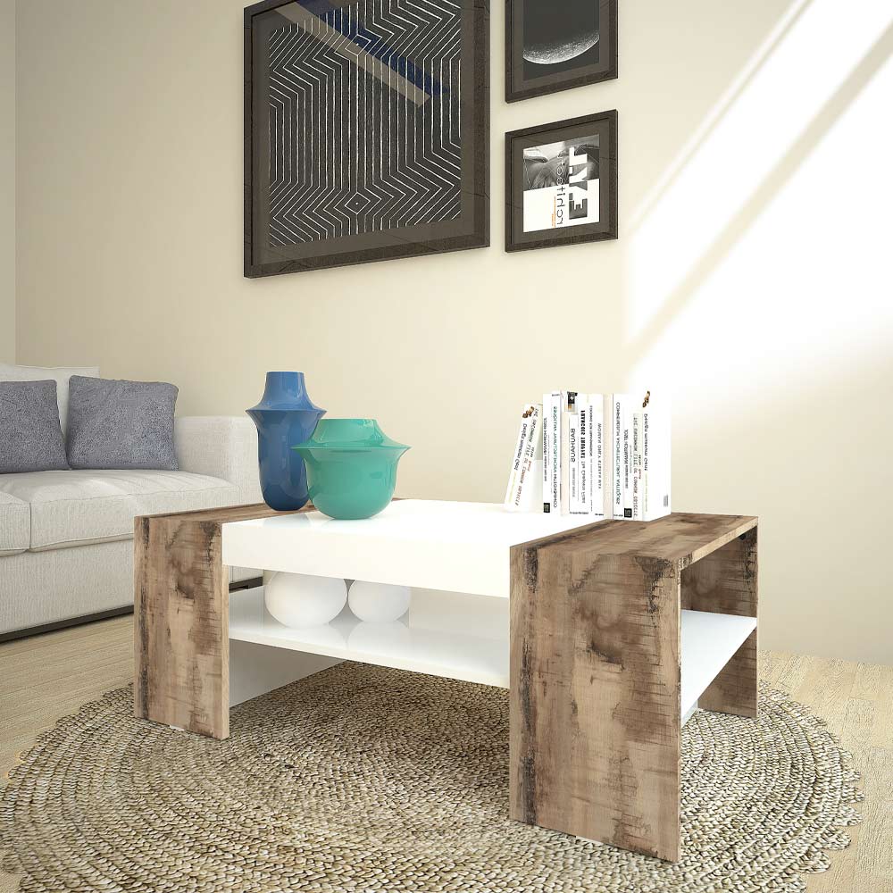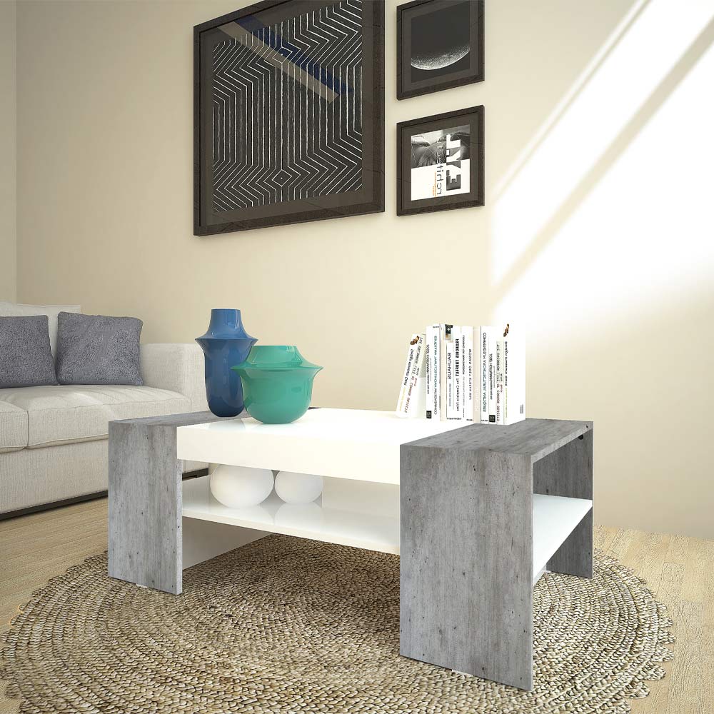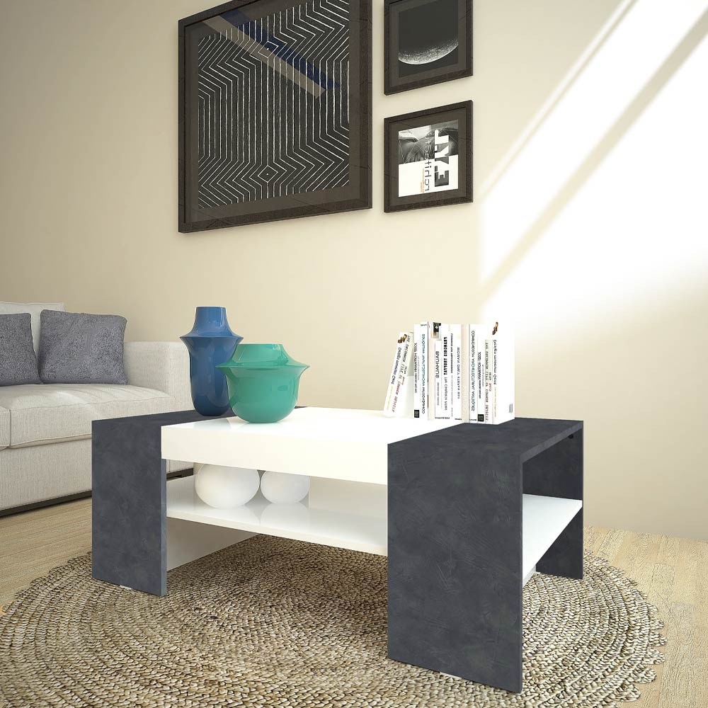 Sofabord til stuen i blankt hvidt træ 3 finish lavet i Italien.