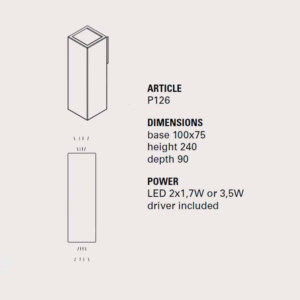 Egnede pærer, medfølger ikke:- lumen 230 2 x 1,7W IP 65, 3000K 90° vinkel;