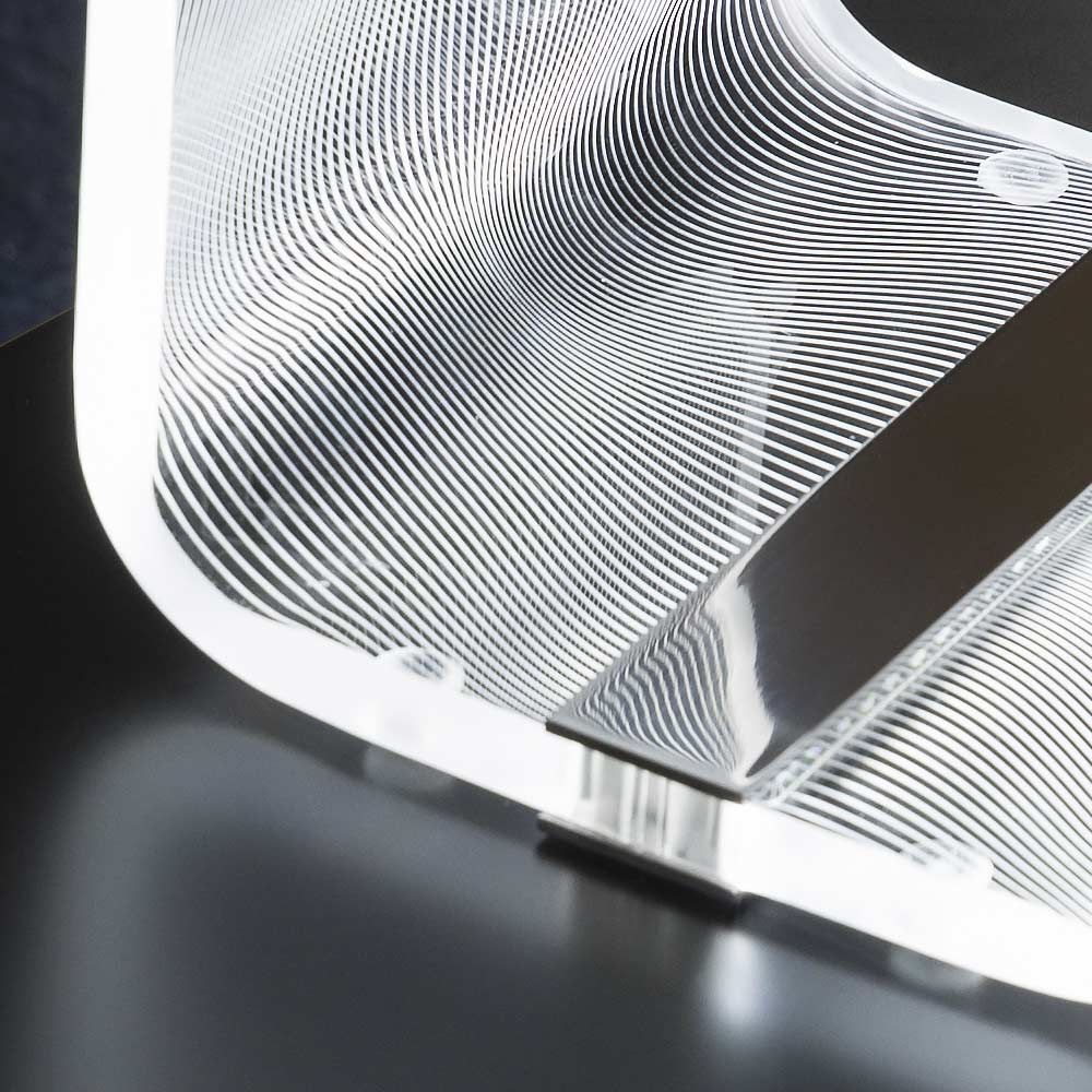 lasergraverede teksturer, der fremhæver de kromatiske nuancer, de originale graveringer lyser op langs alle væggene takket være en enkelt