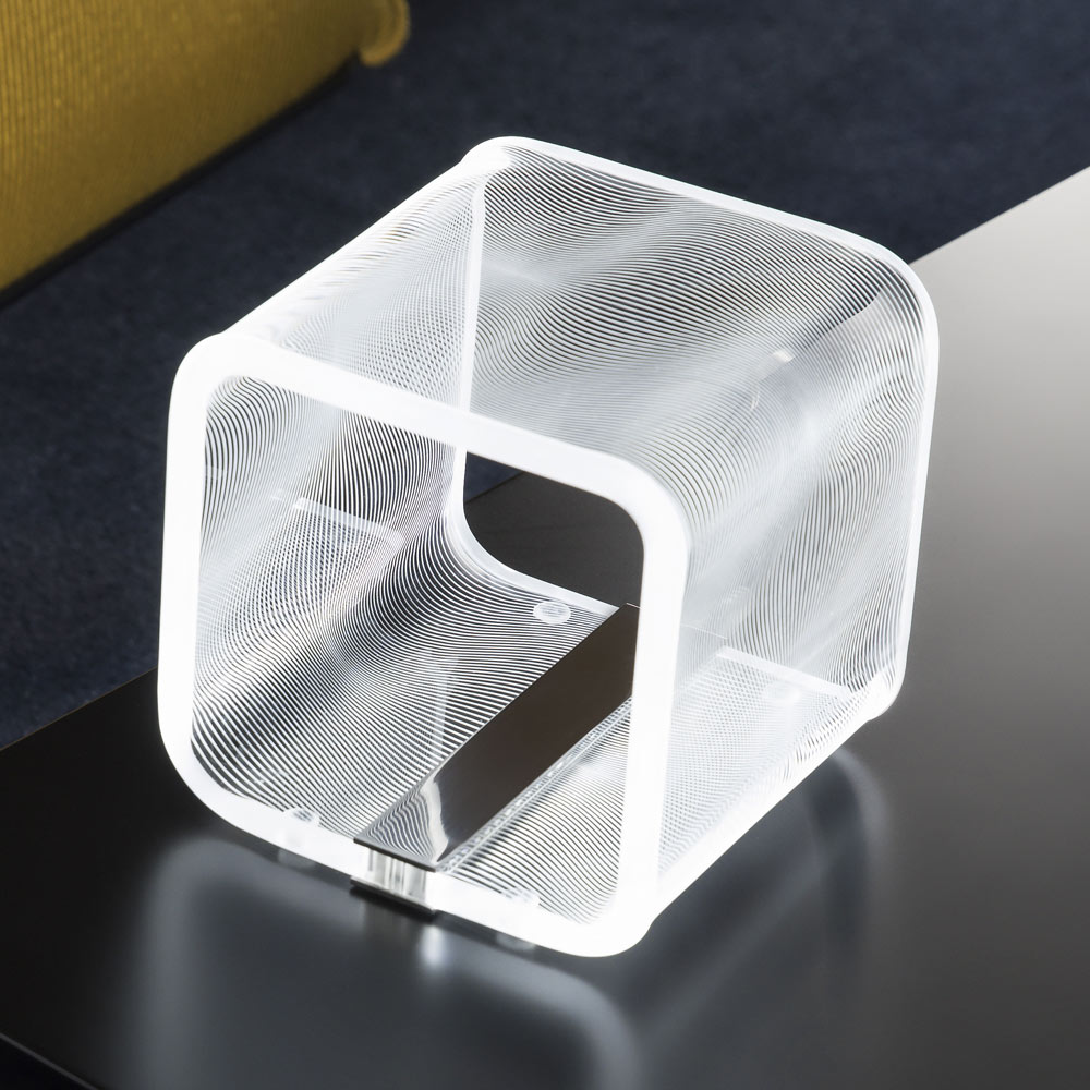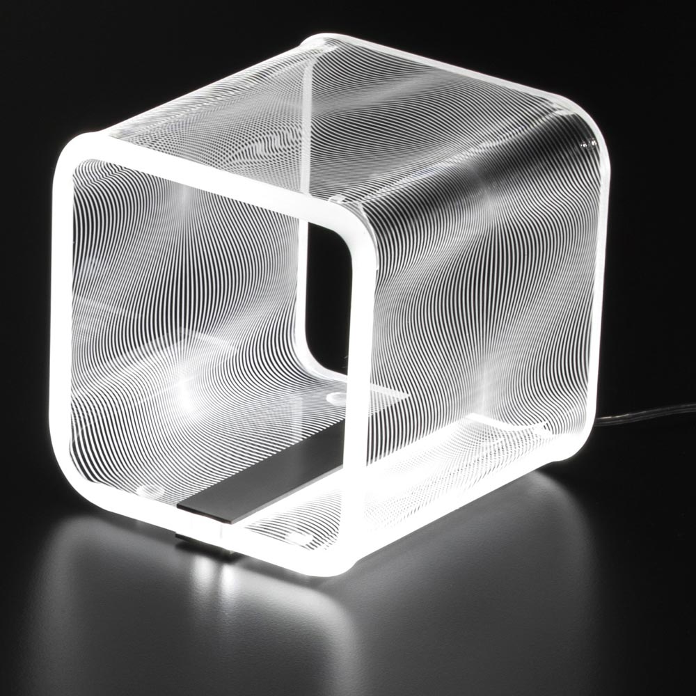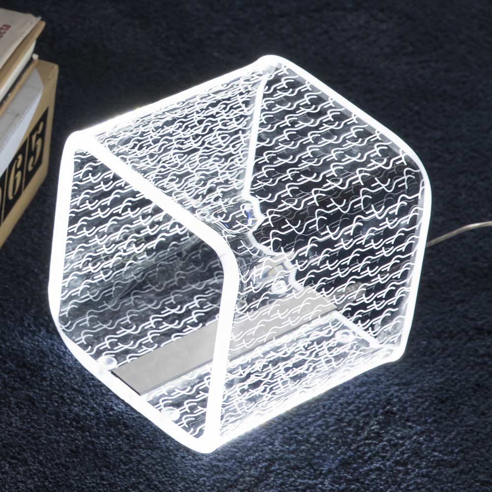 Firkantet led strip bordlampe i transparent akryl 2 størrelser, lavet i Italien.