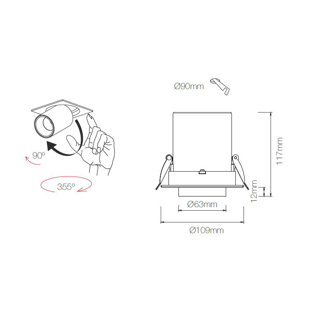 Justerbar forsænket led spotlight i hvid eller sort aluminium.