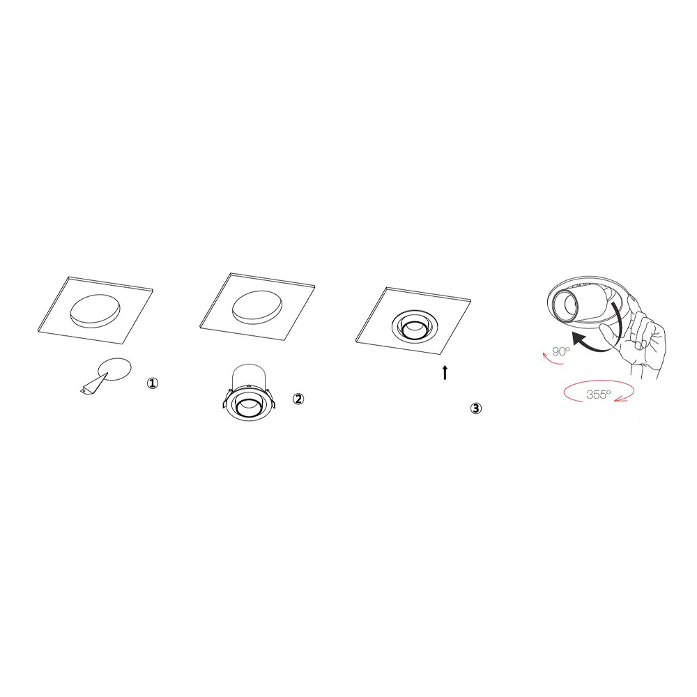 Indendørs forsænket led spotlight i hvid eller sort aluminium.