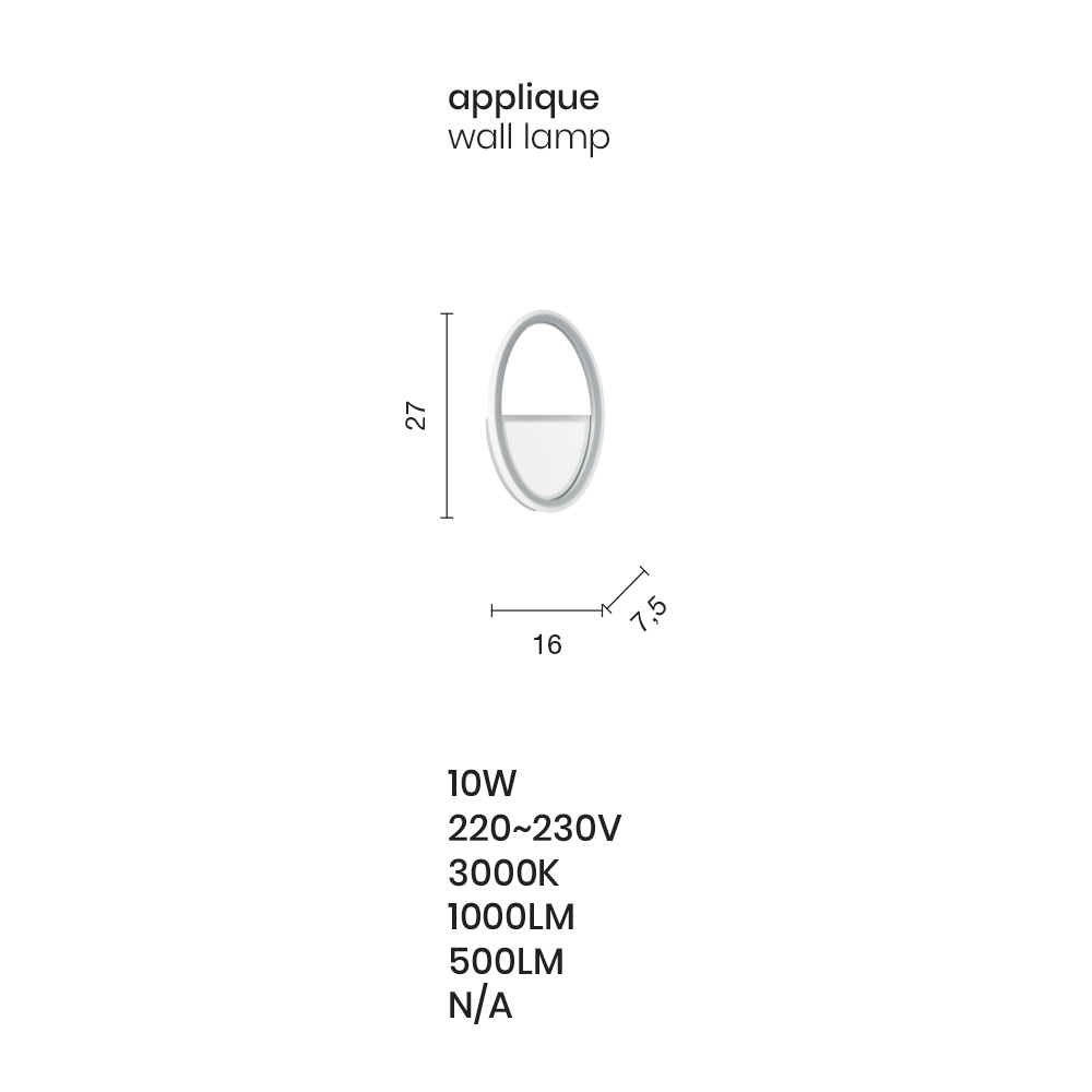 Væglampe i metal med diffuser i akryl og silikone LED.