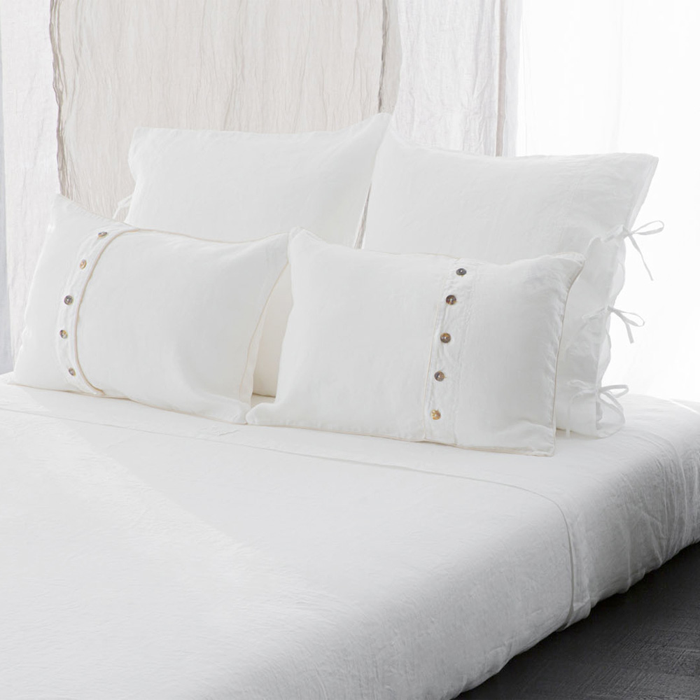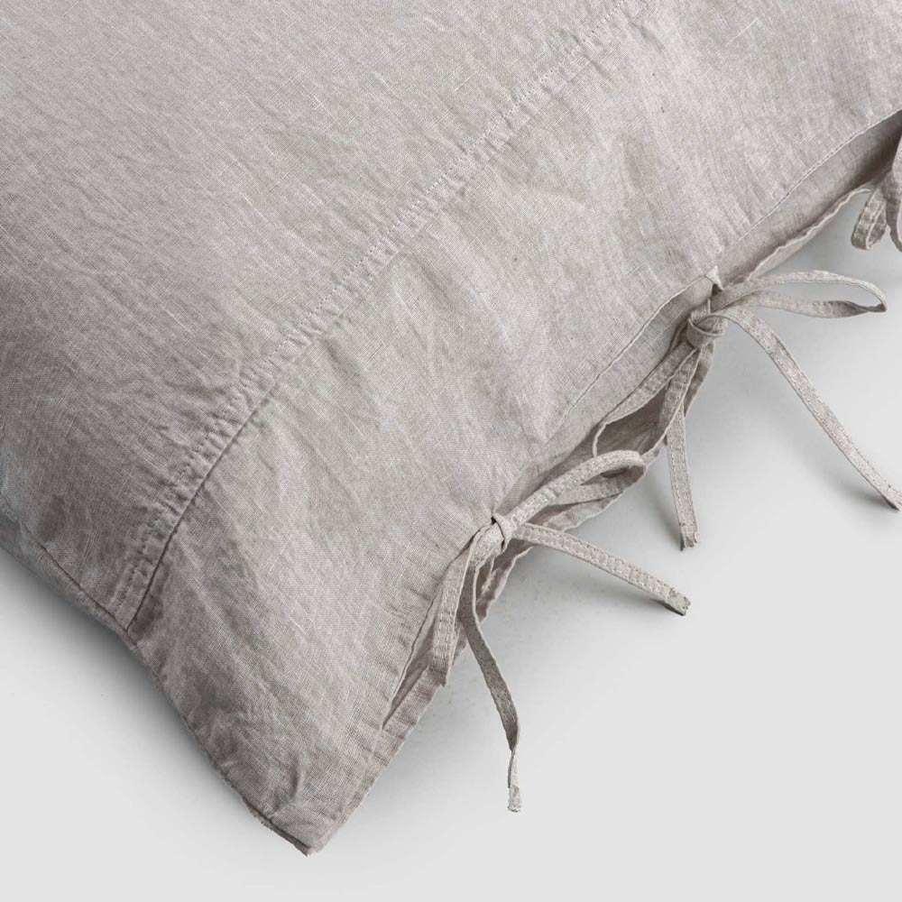 Firkantet pudebetræk i linned med snørebånd, 2 overflader fremstillet i Italien.