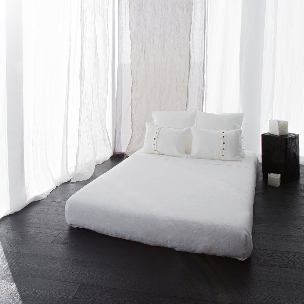 linned af høj kvalitet og er blød at røre ved takket være specielle behandlinger, der forbedrer dets naturlige udseende. Det er et ideelt stof til sengen, da det er