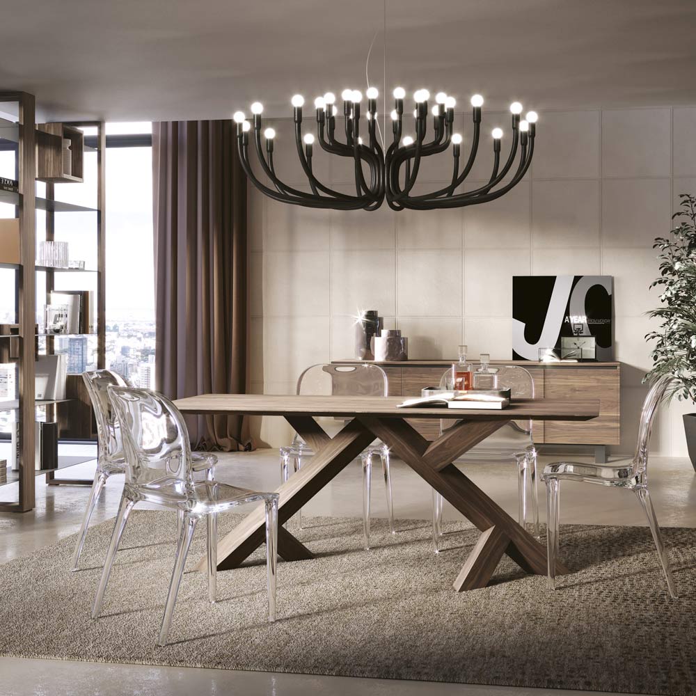Stuebord i massiv valnød fås i forskellige kanter Made in Italy.