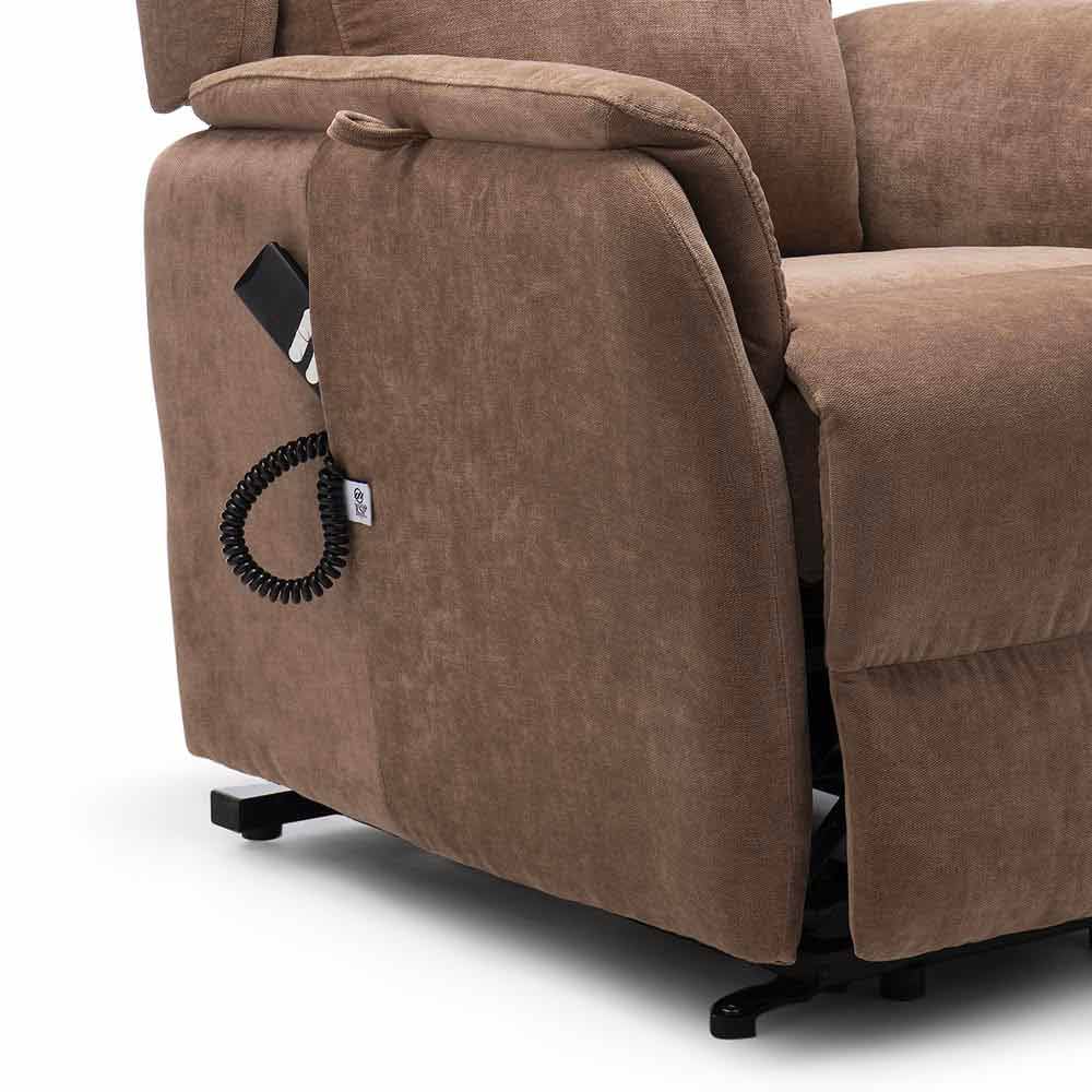 et løftesystem (Lift) eller en elektrisk motor, der gør det muligt at løfte stolen. Lift-systemet er særligt nyttigt for personer med mobilitetsproblemer, da det giver dig mulighed for at rejse sig eller læne dig sikkert. Elevatorfunktionen, der er integreret i liftstolen, gør det muligt for den person, der sidder på stolen, at blive ledsaget af bevægelsen for at kunne rejse sig i