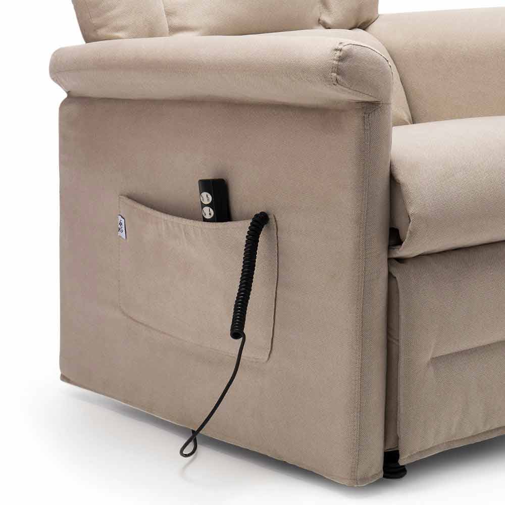 et løftesystem (Lift) eller en elektrisk motor, der gør det muligt at løfte stolen. Lift-systemet er særligt nyttigt for personer med mobilitetsproblemer, da det giver dig mulighed for at rejse sig eller læne dig sikkert. Elevatorfunktionen, der er integreret i liftstolen, gør det muligt for den person, der sidder på stolen, at blive ledsaget af bevægelsen for at kunne rejse sig i